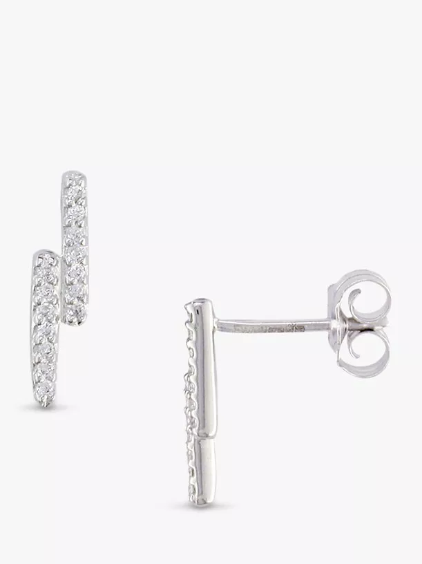 London Road9ct White Gold Double Bar Stud Earrings