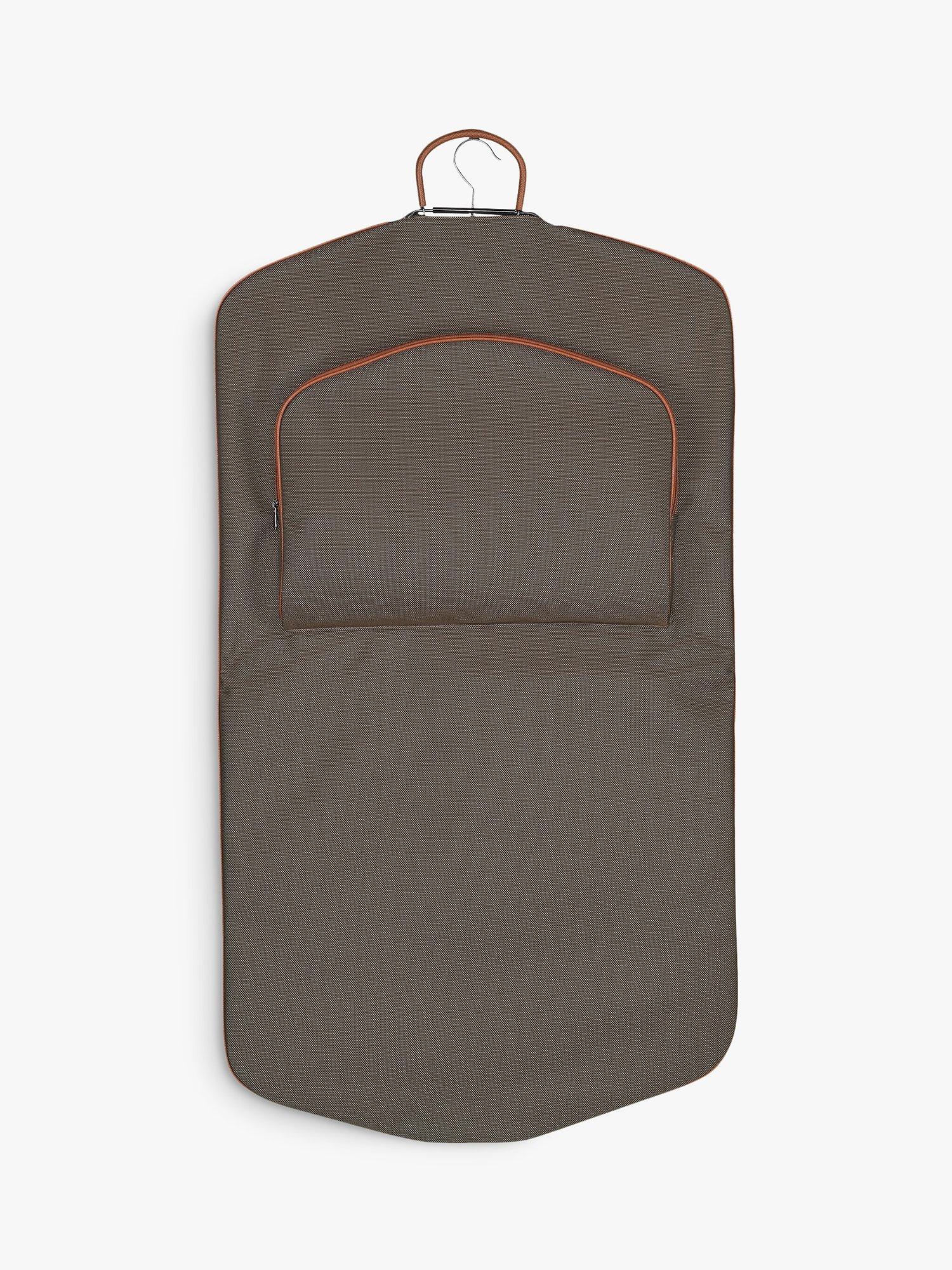Offering a smart way to keep your clothes protected on your travels, this garment cover is decorated with a two-tone leather trim giving the canvas a rich three-dimensional effect.
