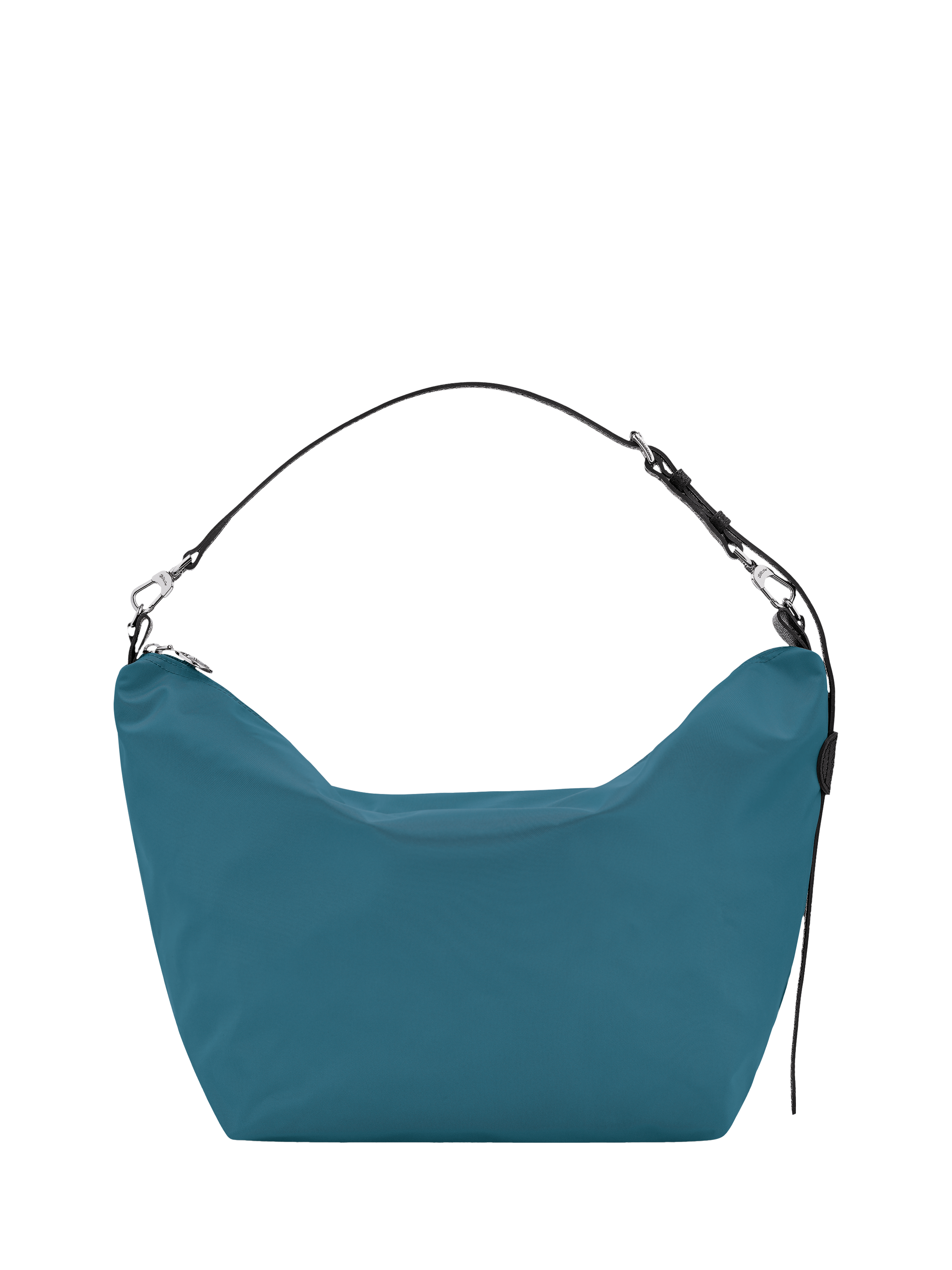 Embrace the season's slouchy trend with this large shoulder bag crafted from polyamide canvas, featuring a cloud-like look. The zipper, adorned with the Longchamp rider medal, secures your belongings. An oval-shaped loop supports a slim adjustable, removable leather shoulder strap, offering endless possibilities to personalize your bag.