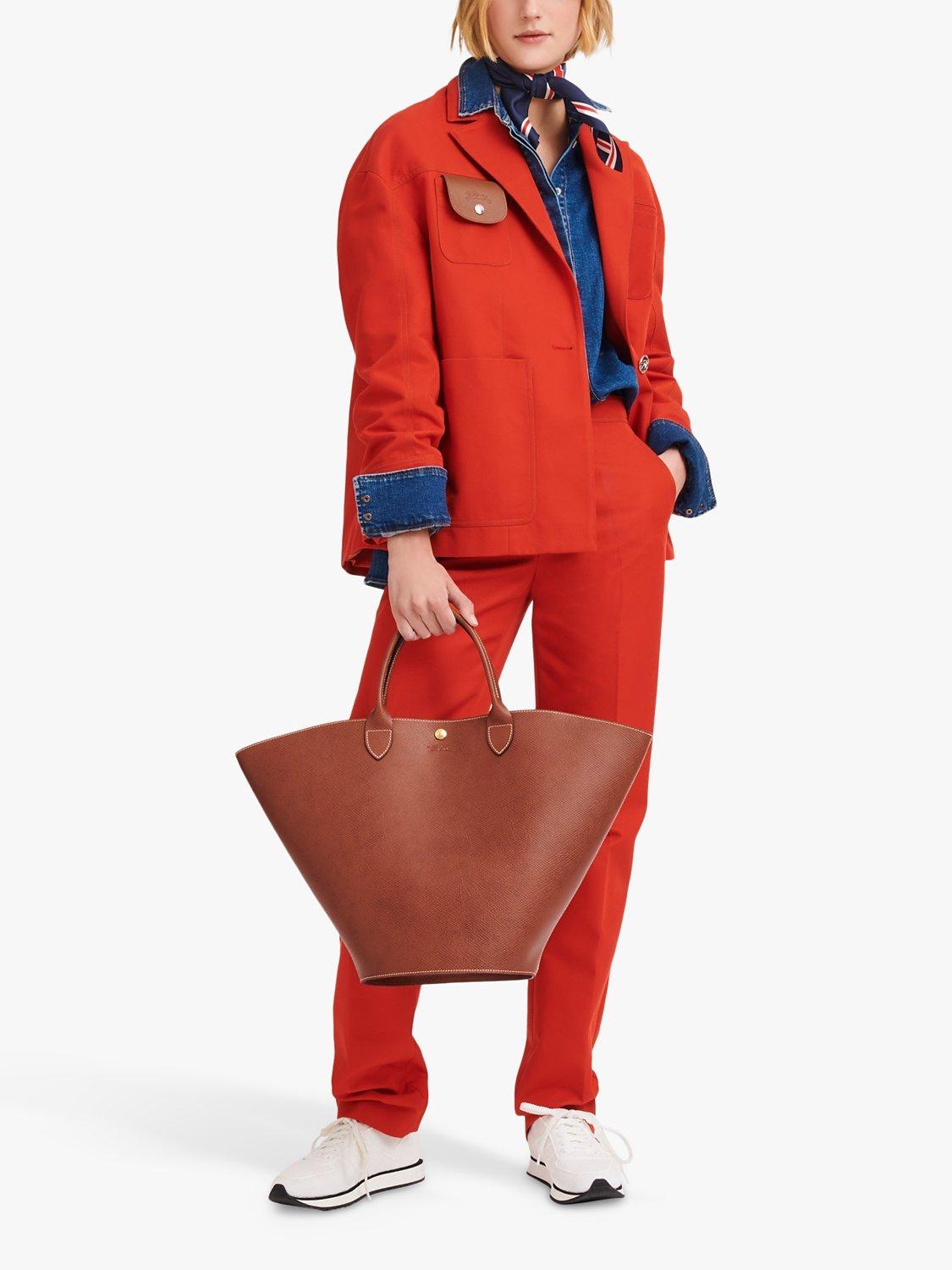 An irresistible extra-large leather tote bag in a timeless design with a snap button closure. Carry by hand or on your arm to enhance any outfit or look. Inside, there's a slip pocket and a zipped pocket for your essentials.
