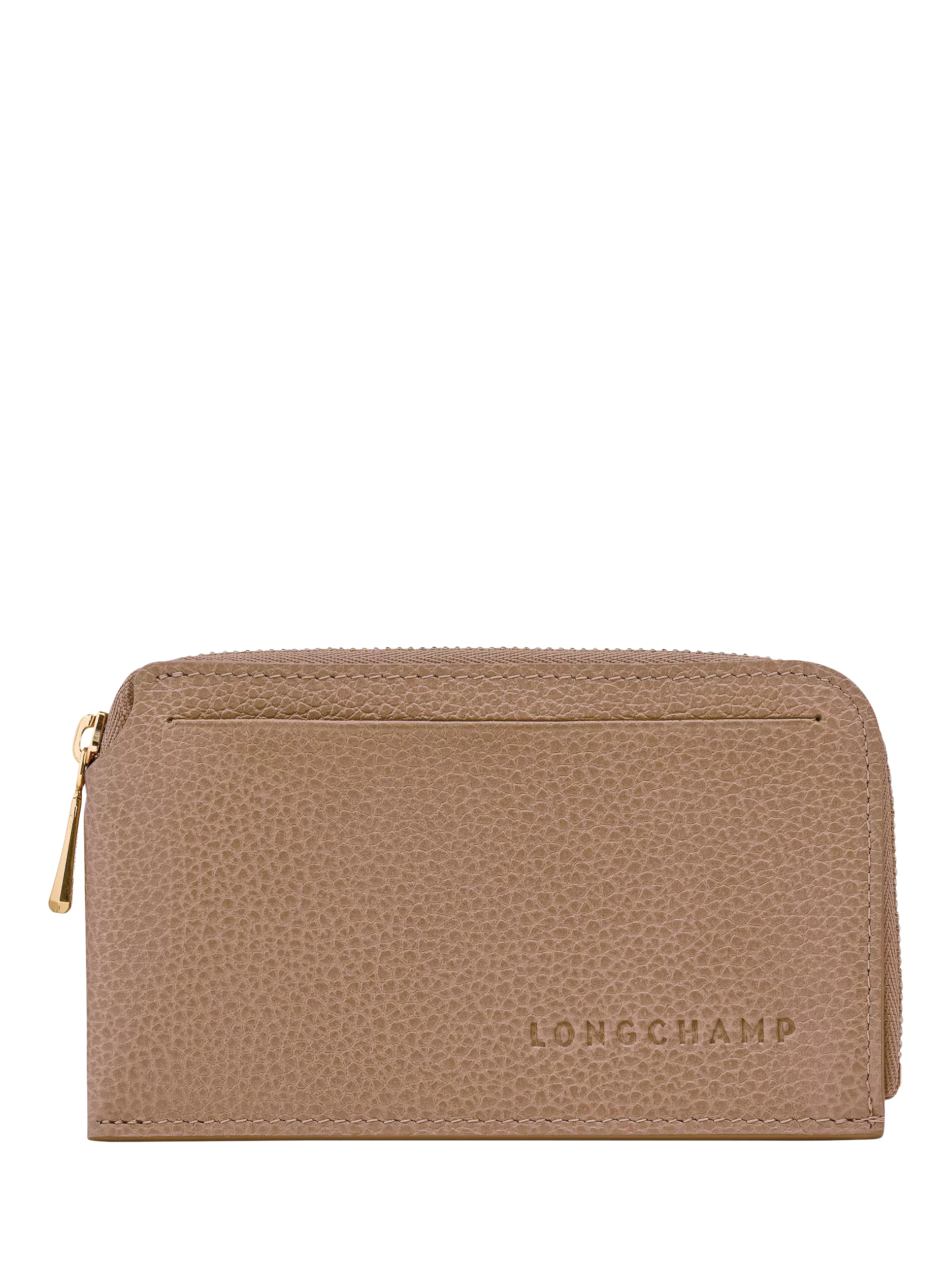 This sleek cardholder combines style and functionality with a zipped compartment and four card slots. Crafted from supple, durable grained cowhide leather, it is distinguished by the embossed Longchamp logo, a hallmark of the Le Foulonné collection.