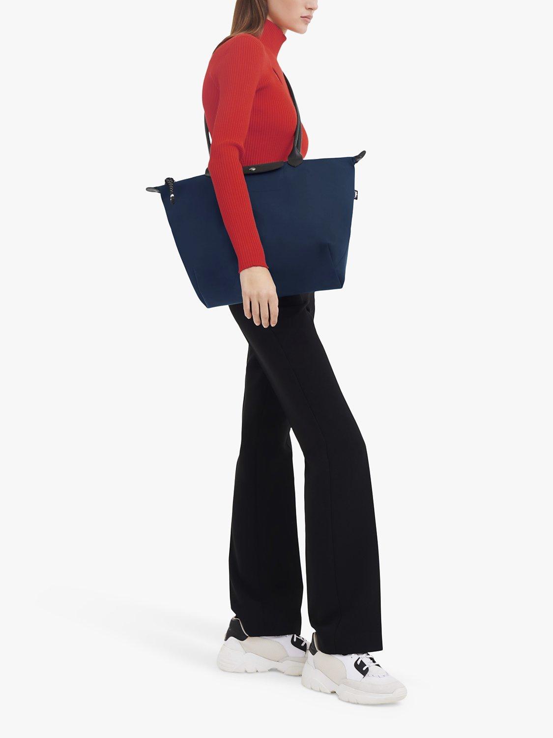 With its XXL handles, this shopping bag has a seductive dual-wear design across the body for a sportswear style or on the shoulder for a more classic look. Its spaciousness and zip closure are ideal for securely carrying a laptop and your belongings.