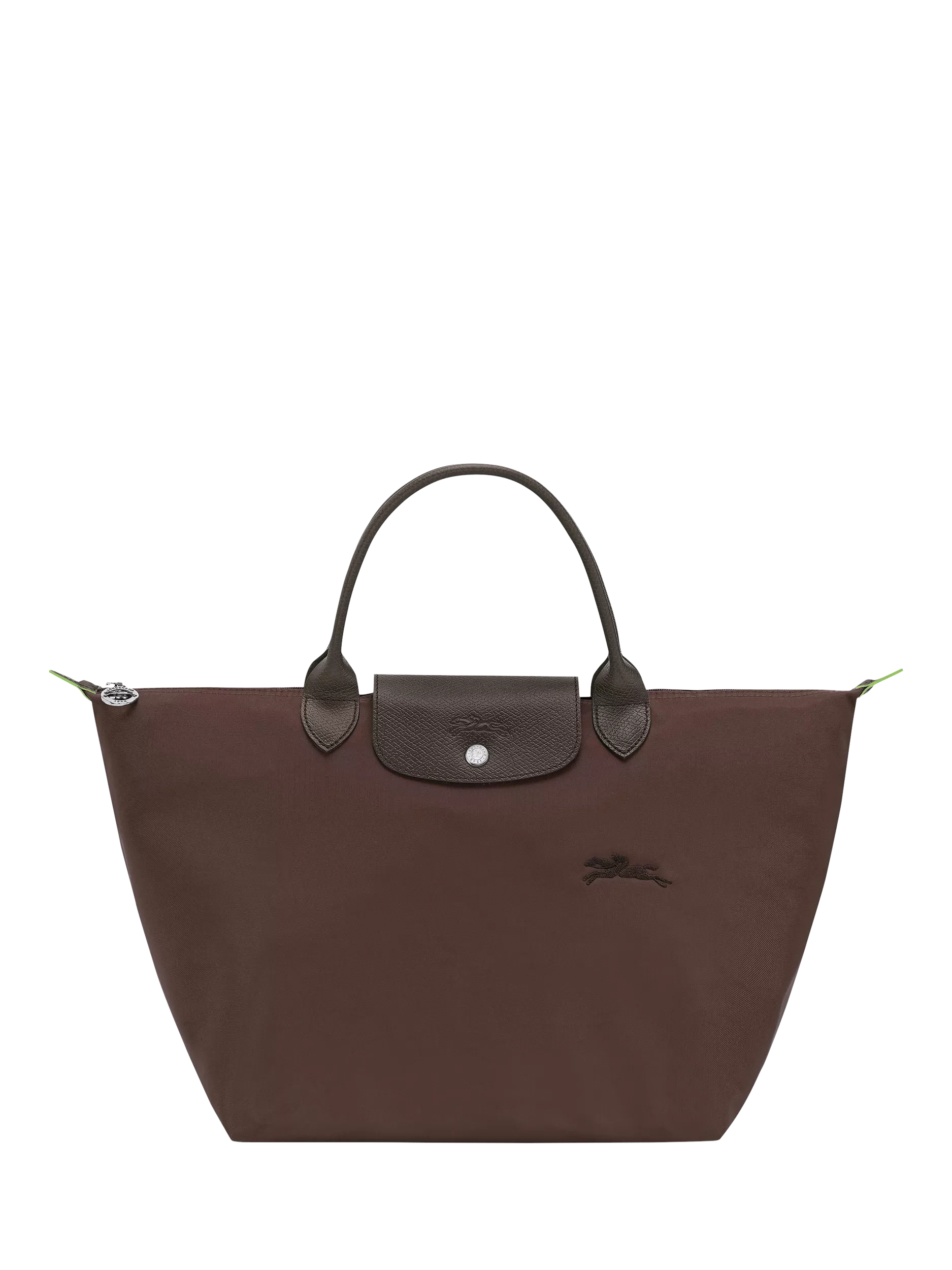The bag follows strong codes, like the horse embroidery, and has tone-on-tone Russian leather trimmings characteristic of Longchamp.