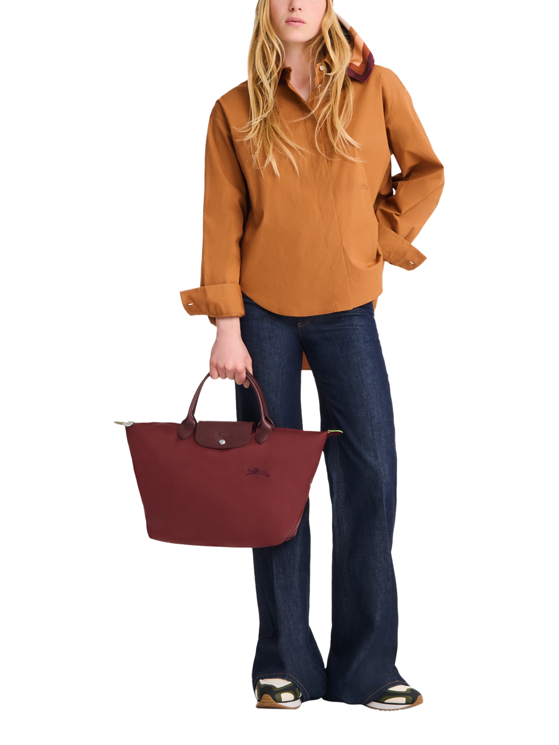 Longchamp drew its inspiration from origami when creating Le Pliage, a light, foldaway bag that has since become a cult object worldwide. The Pliage Green line is made with recycled polyamide canvas.