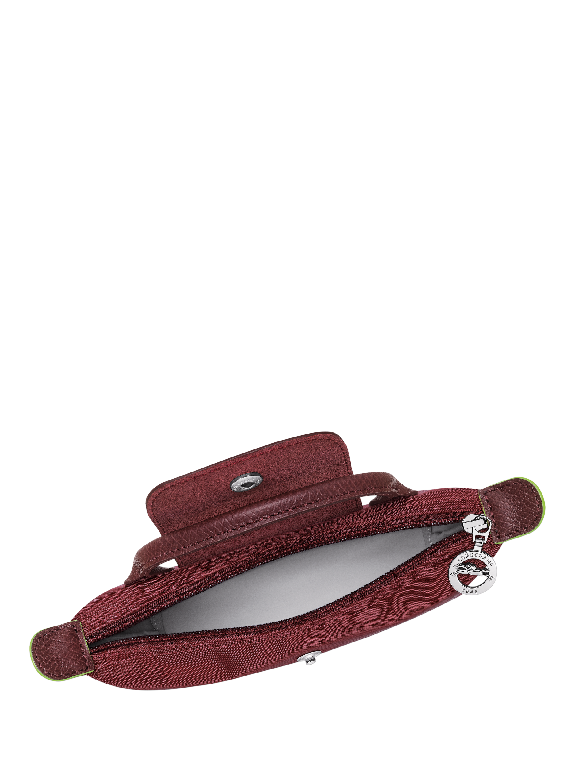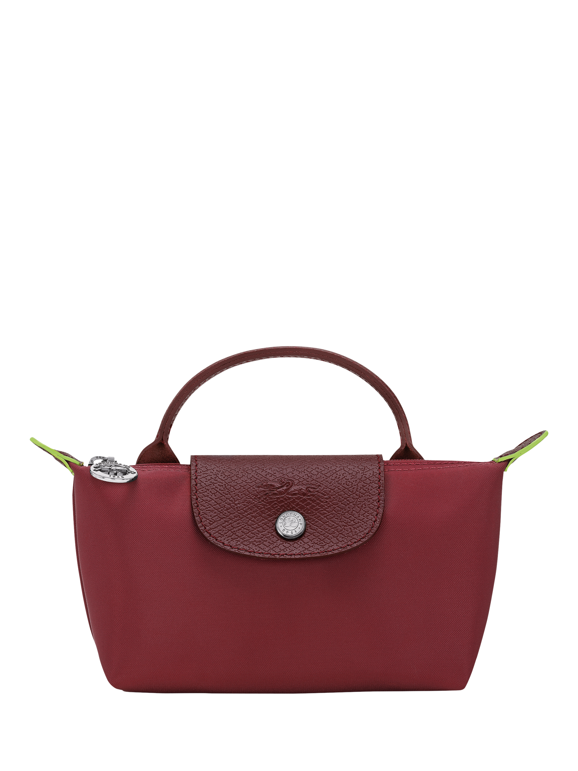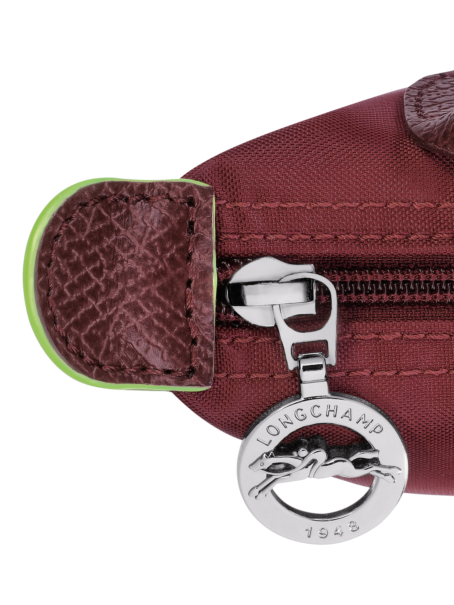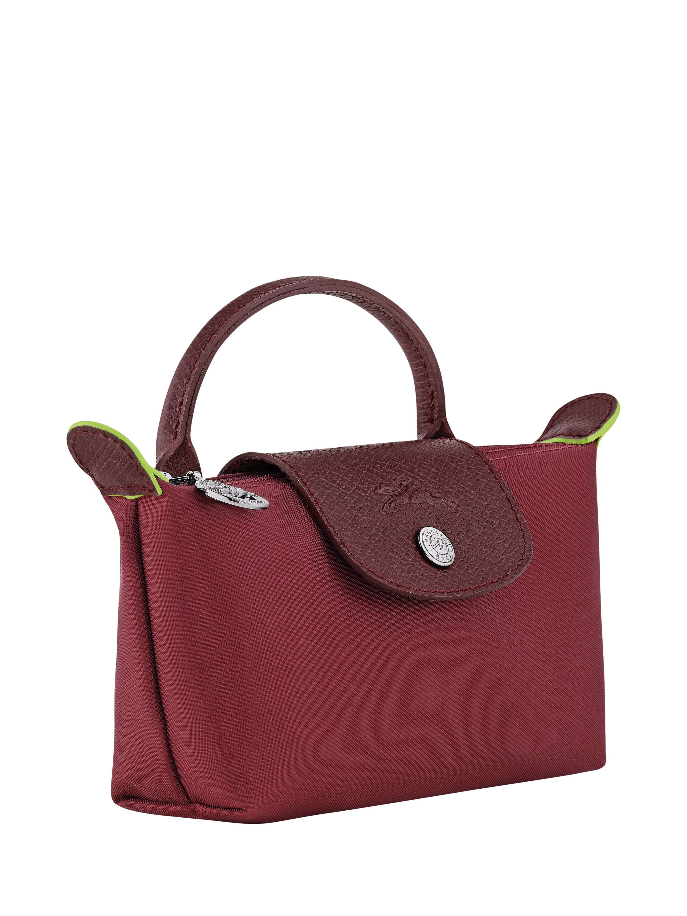 Following Longchamp's key characteristics, like the horse embroidery and tone-on-tone leather, Le Pliage Green also features the ultimate detail: a green edge on the ear, indicative of its use of materials.
