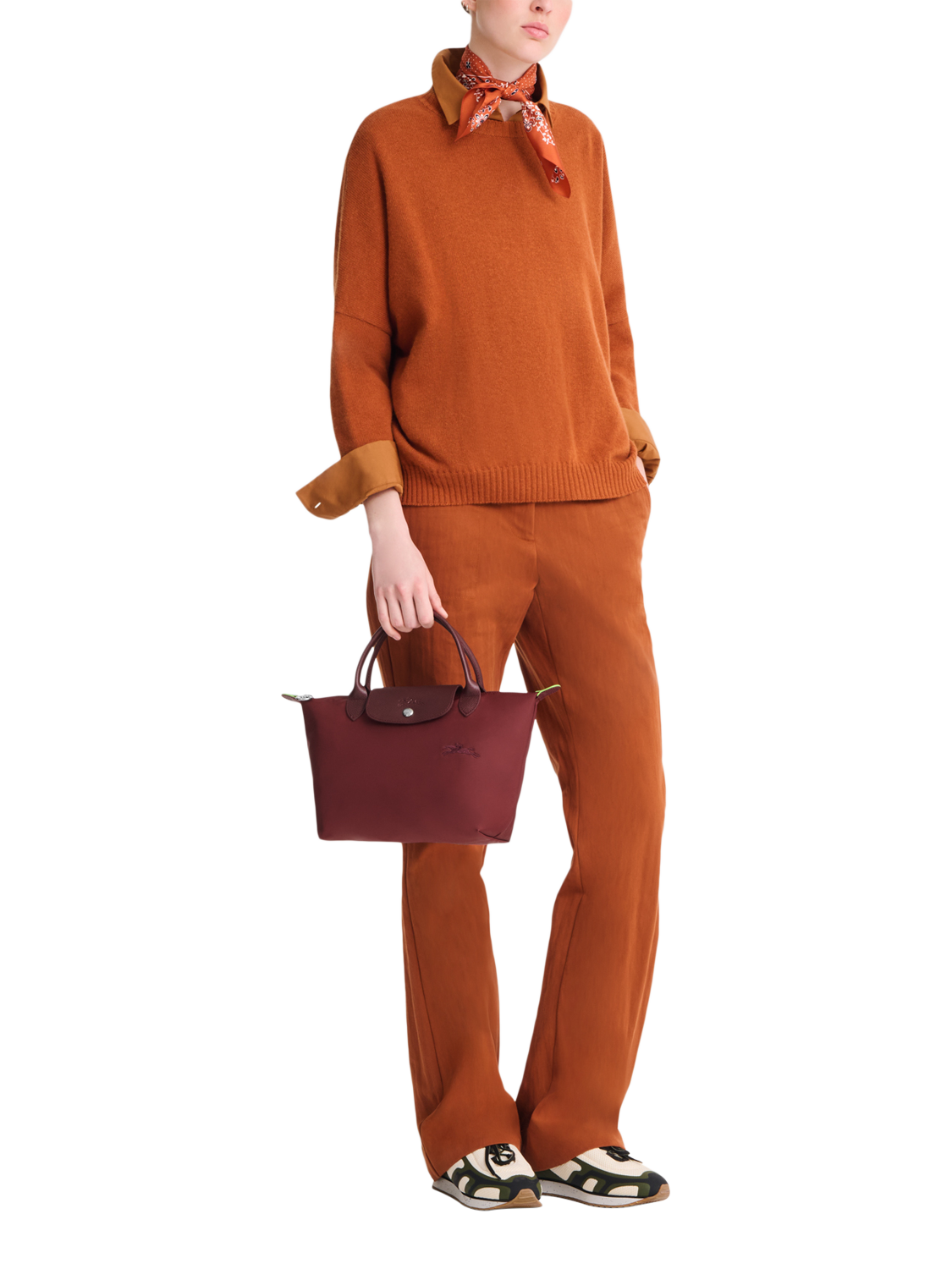 Following Longchamp's key characteristics, like the horse embroidery and tone-on-tone leather, Le Pliage Green also features the ultimate detail: a green edge on the ear, indicative of its use of materials.
