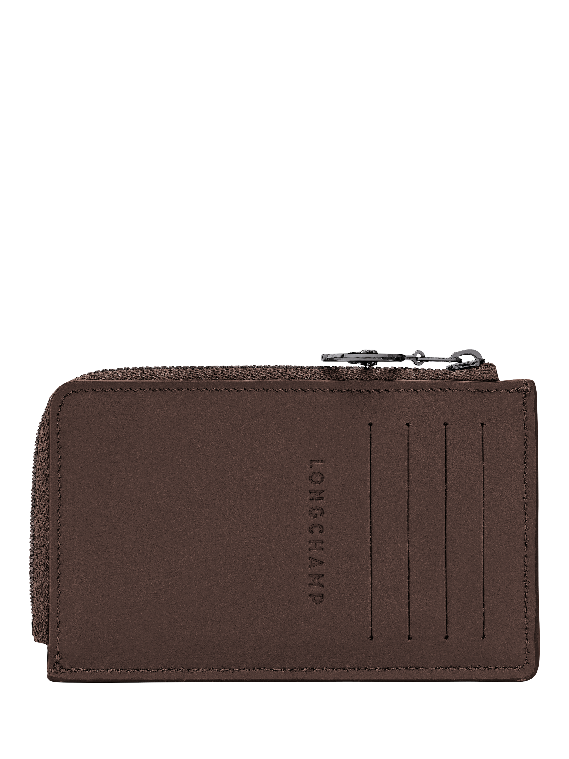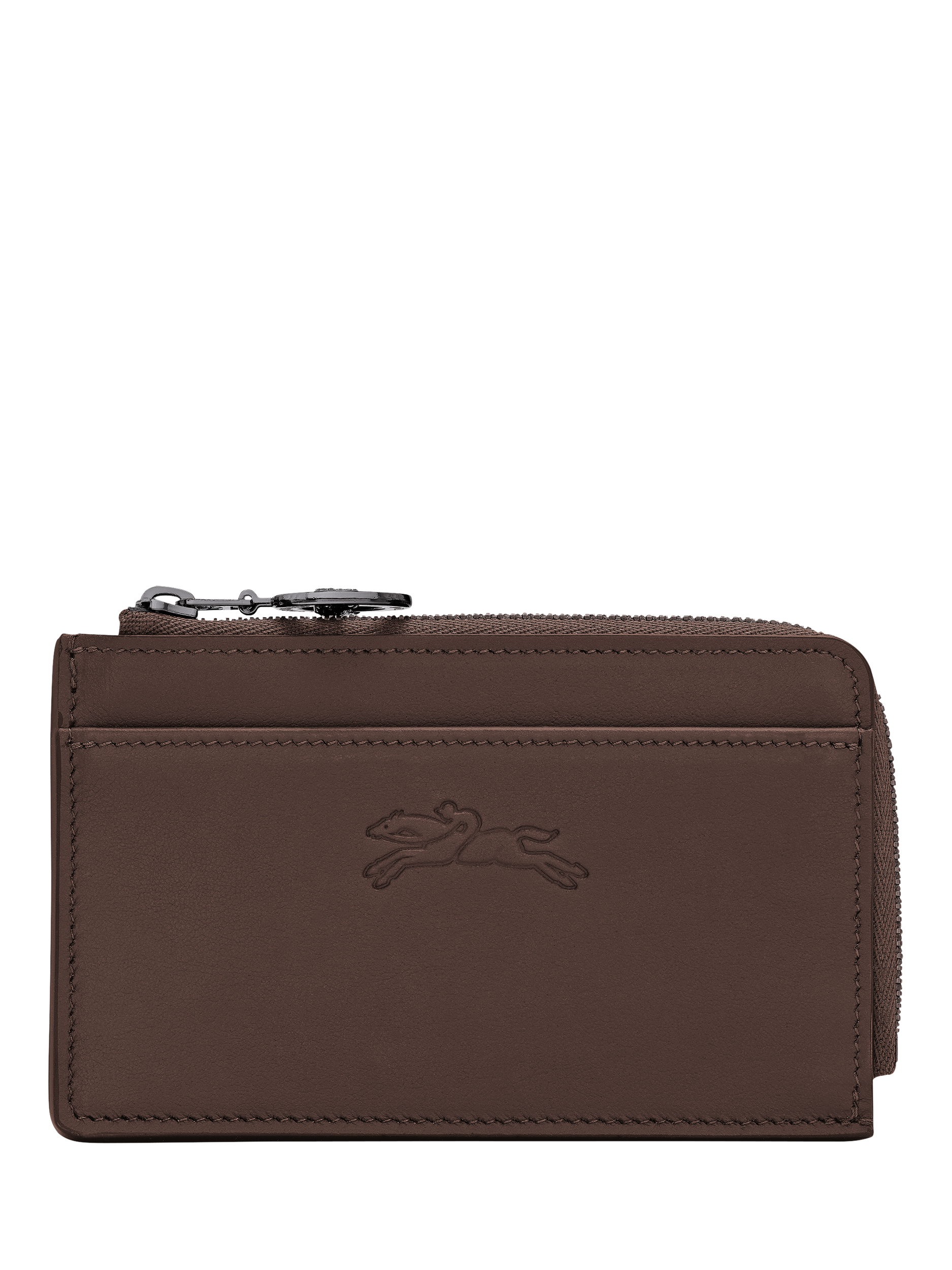 This Longchamp cardholder combines elegance and functionality, making it the perfect companion for your daily travels. It features a convenient zippered compartment for coins and cash, along with four card slots. Crafted from supple, durable cowhide leather, it boasts a timeless appeal.