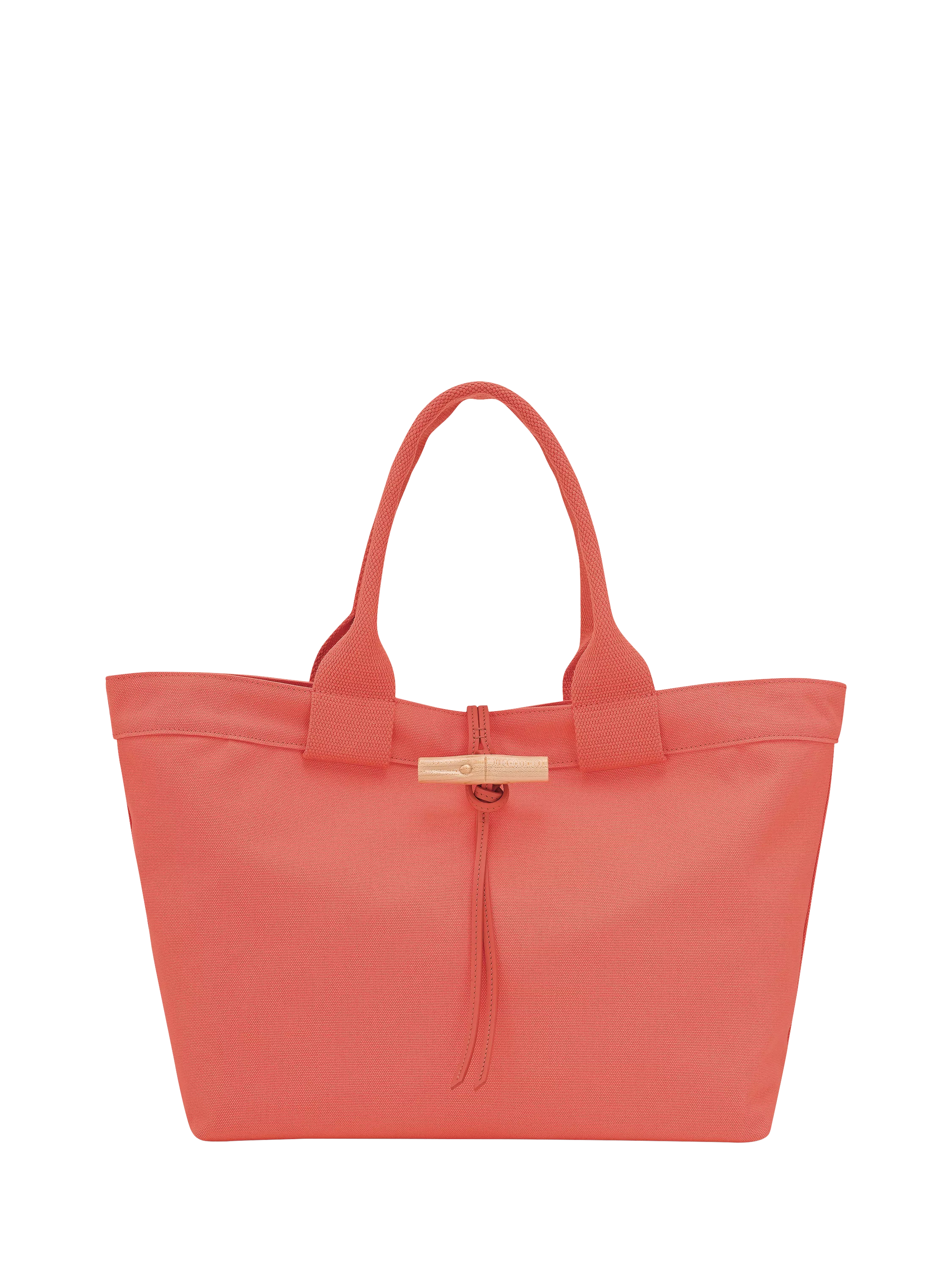 Crafted entirely from raw cotton canvas, this large Le Roseau tote celebrates natural materials with a clean, modern design. The signature bamboo clasp, carved from maple wood, is paired with a feminine cowhide leather loop detail. Long handles provide comfortable shoulder wear, while the spacious interior easily accommodates A4 documents and a laptop, complete with a flat pocket and a zipped pocket for organization. Inside, a seasonal Longchamp label adds the finishing touch to this understated yet refined everyday companion.