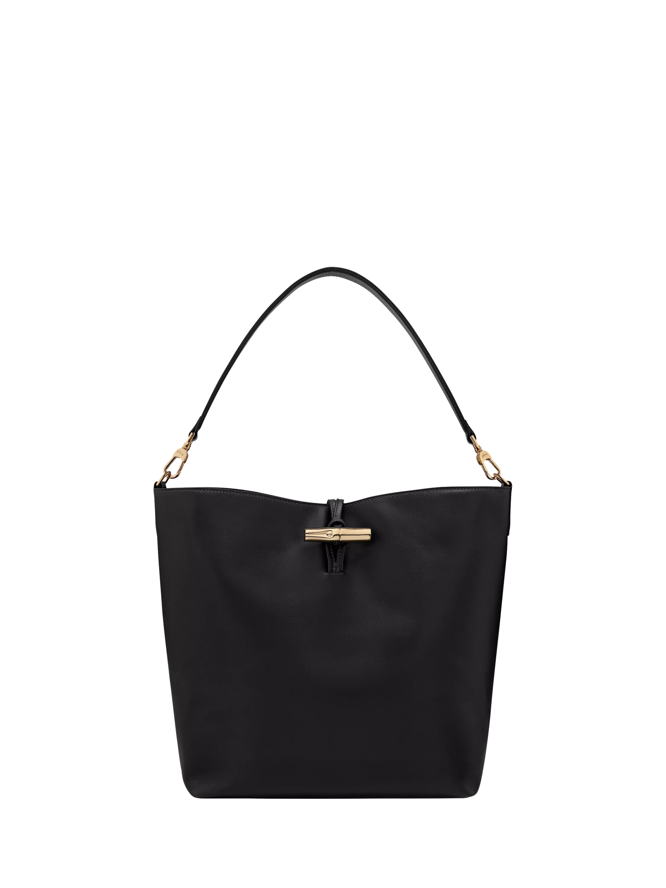 This large smooth calfskin leather shoulder bag exudes timeless elegance. It easily accommodates a 13-inch laptop, a book, and other everyday essentials. The pale gold Bamboo clasp adds a feminine touch. The clean, graphic lines accentuate the leather’s supple texture, which becomes even more beautiful over time.