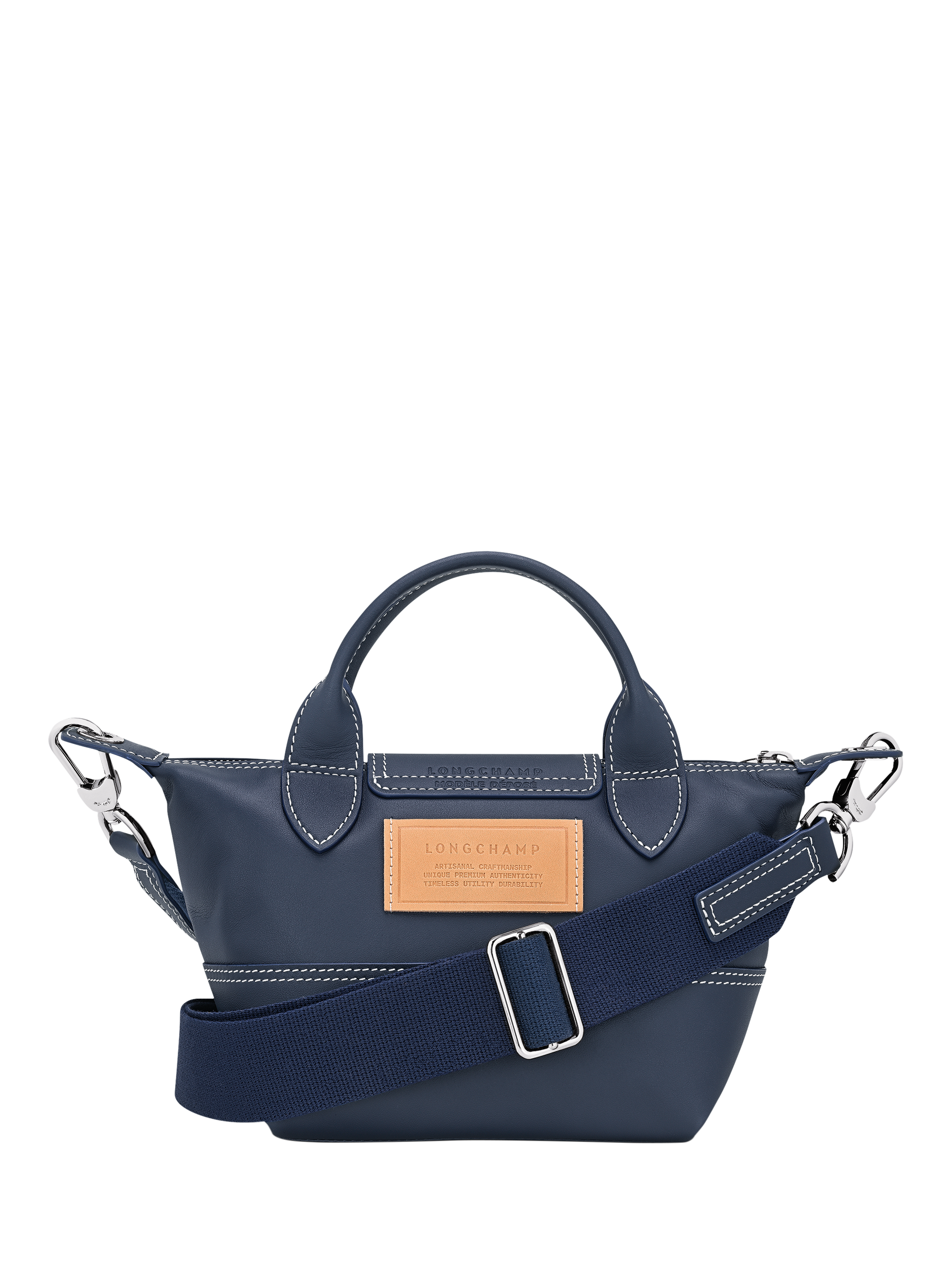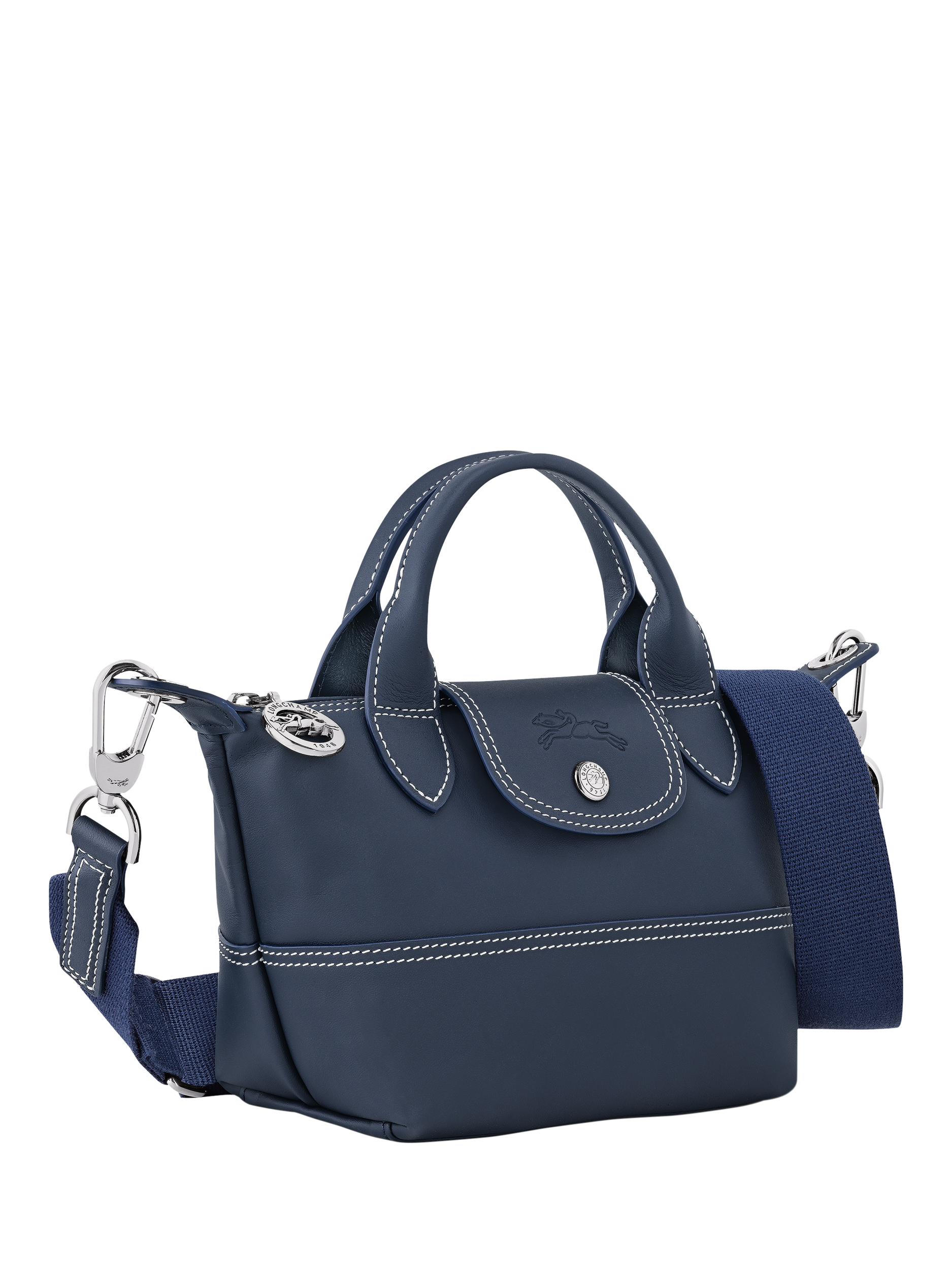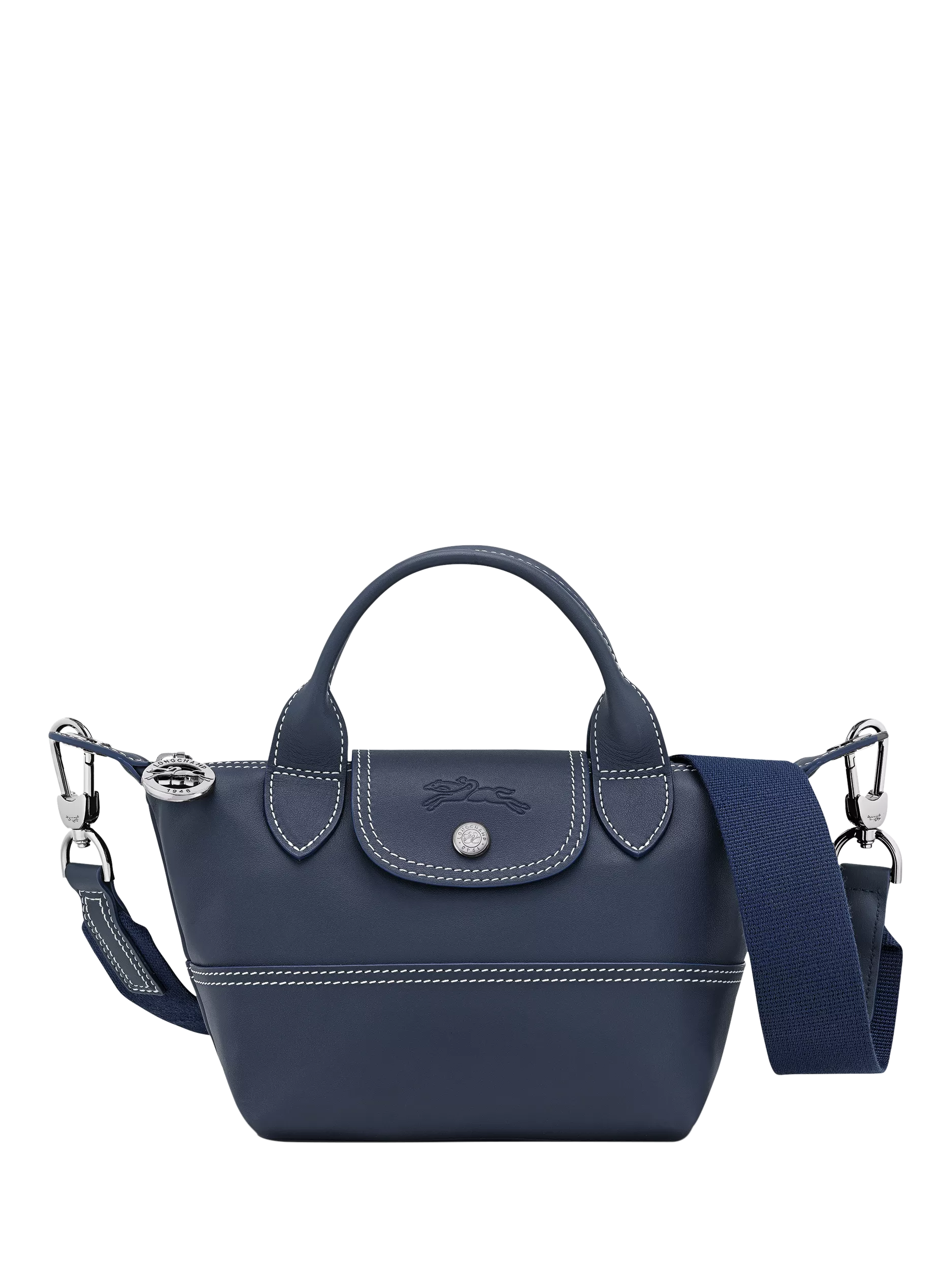 LongchampPliage Leather Extra Small Handbag, Navy Blue