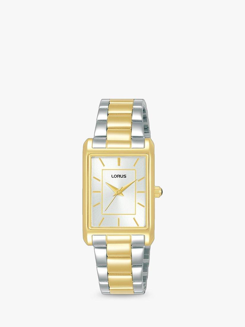 LorusRG286VX9 Women's Rectangular Dial Bracelet Strap Watch, Gold/Silver