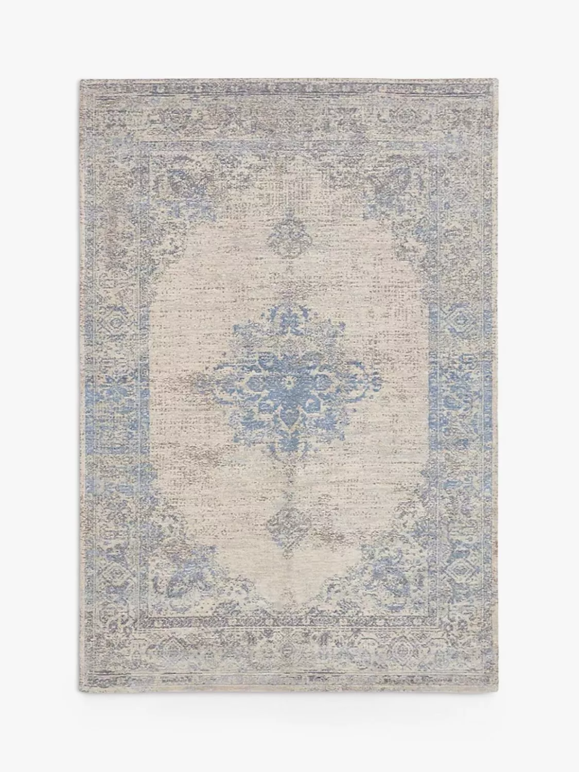 This gorgeous ‘vintage aesthetic’ flat-weave rug takes the timeless appeal of oriental carpeting and gives it a contemporary twist. It features different shades of weave, from clear geometric designs to worn away patches that all blend together beautifully to give you a soft rug that’ll live equally well in a contemporary or more traditional décor.