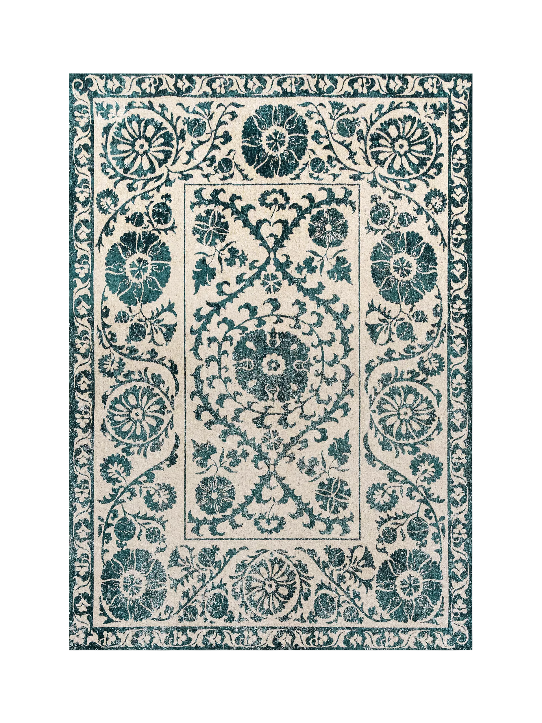 Each rug is infused with the cultural significance of its symbols—circles for eternity, pomegranates for fertility, and geometric shapes for protection— combined in bold, harmonious designs. With a palette that reflects the rich hues of tradition, the Suzani collection brings timeless beauty and modern style into your space, offering a sophisticated blend of history and innovation.