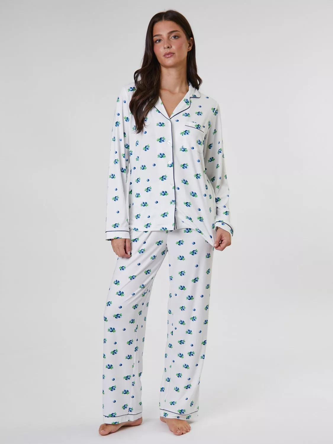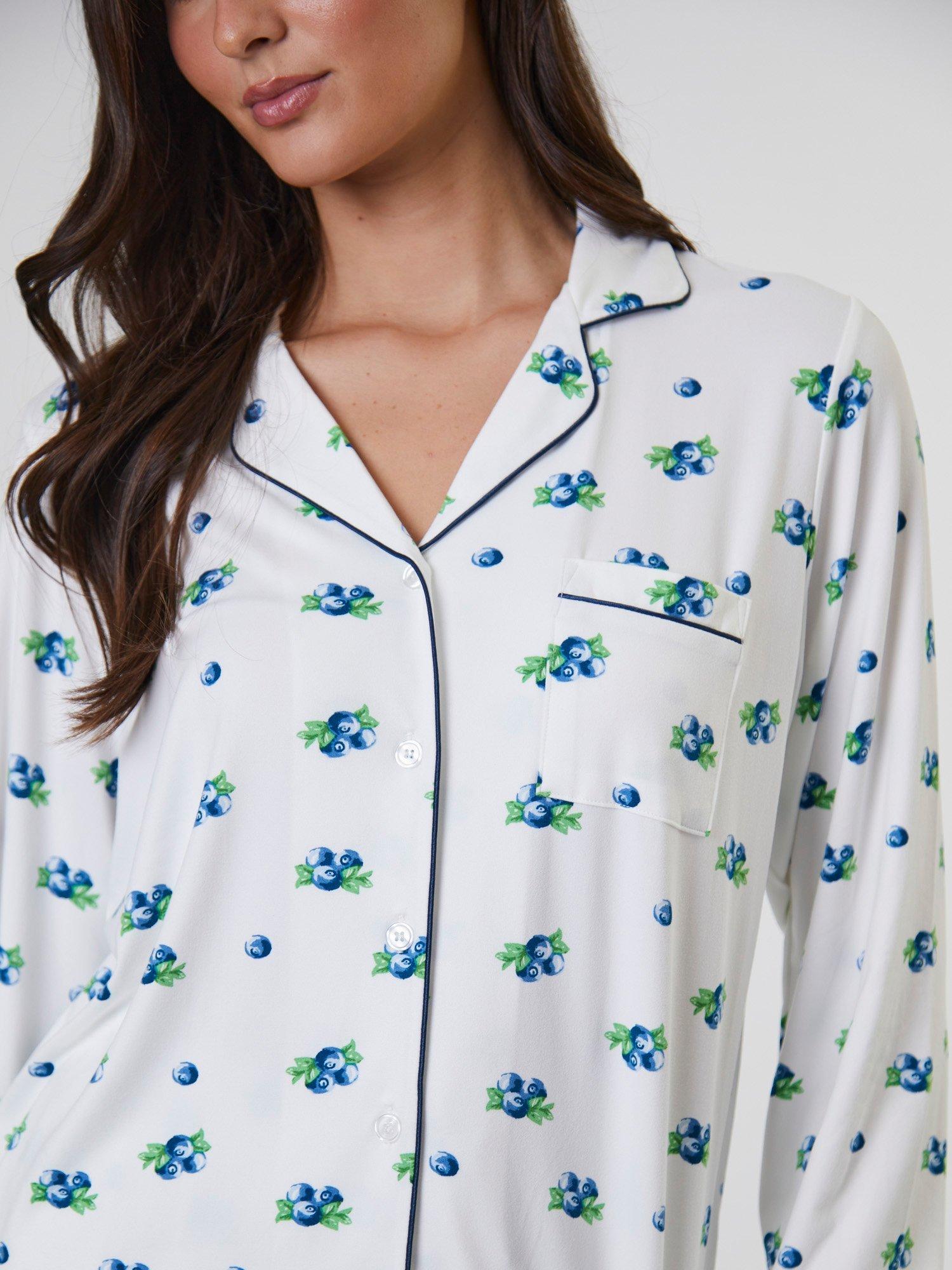 With a fun blueberry design, this long-sleeve pyjama set by Loungeable ensures a restful and restorative sleep with its light and durable blend and is designed with coordinating bottoms.