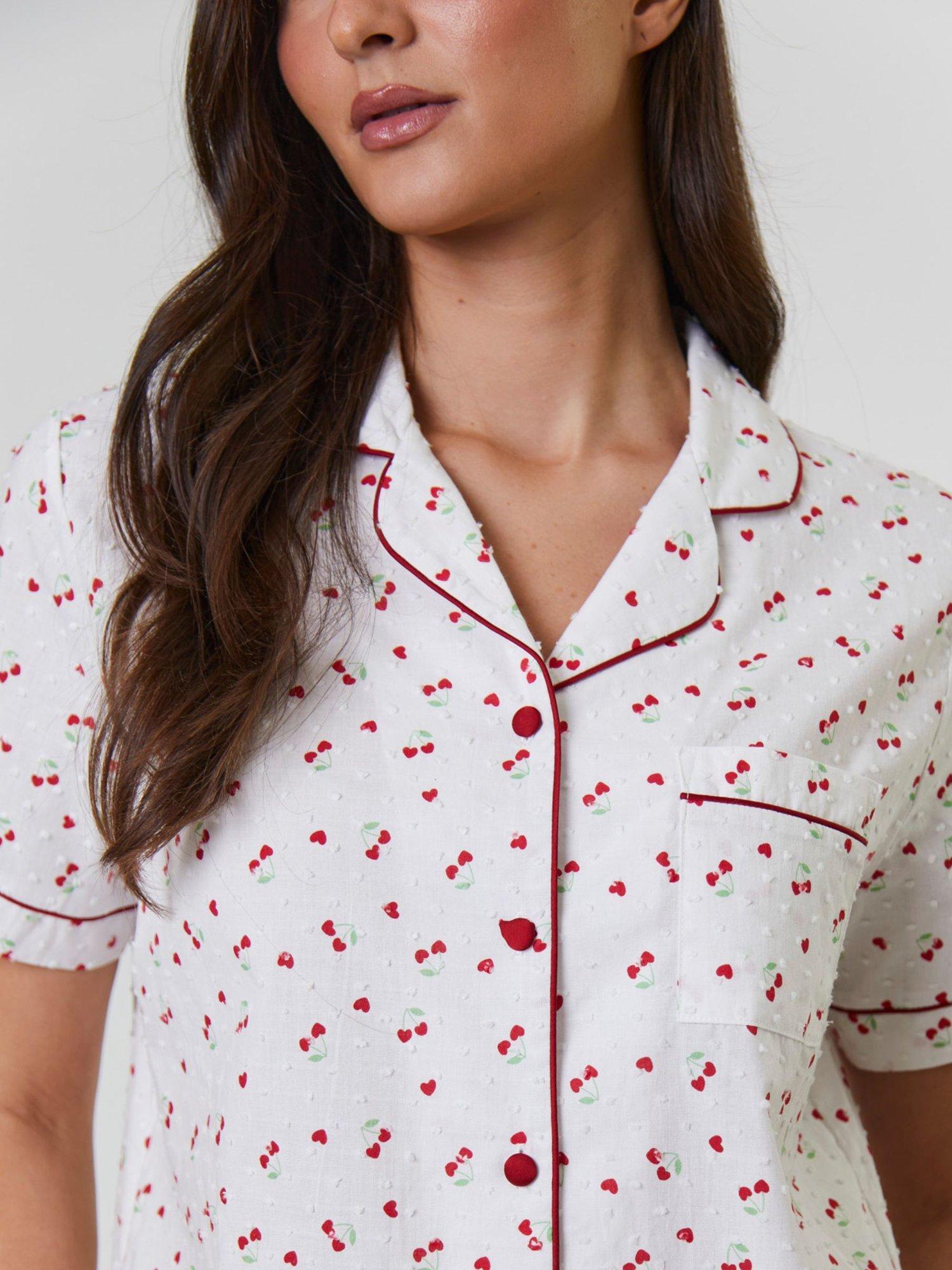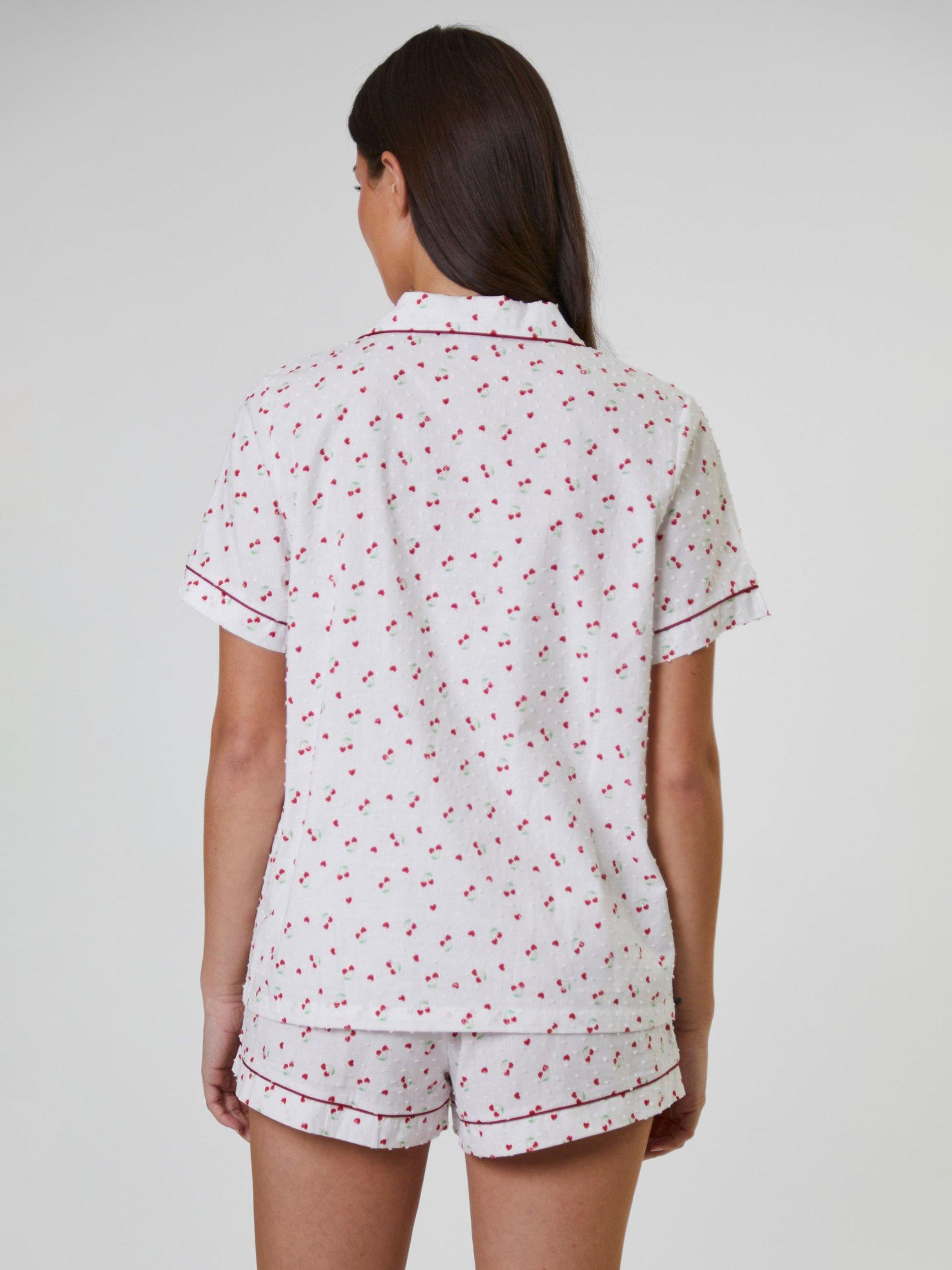 Unwind in cotton comfort with this short pyjama set, designed for easy movement and effortless style. With a shirt-style top and shorts, the cherry print and contrast tipping make it a joy to wear, whether you are starting your morning or winding down at night.