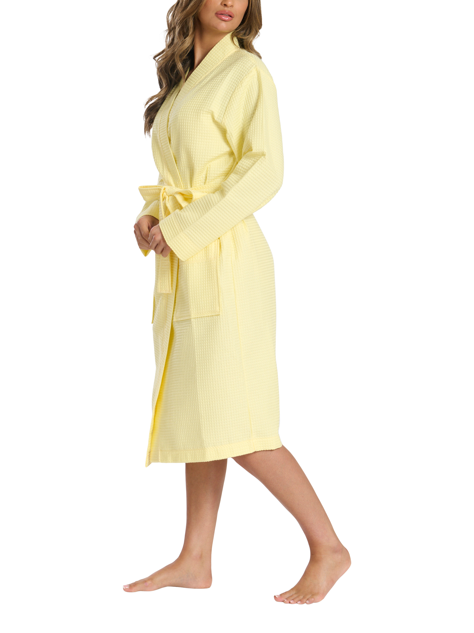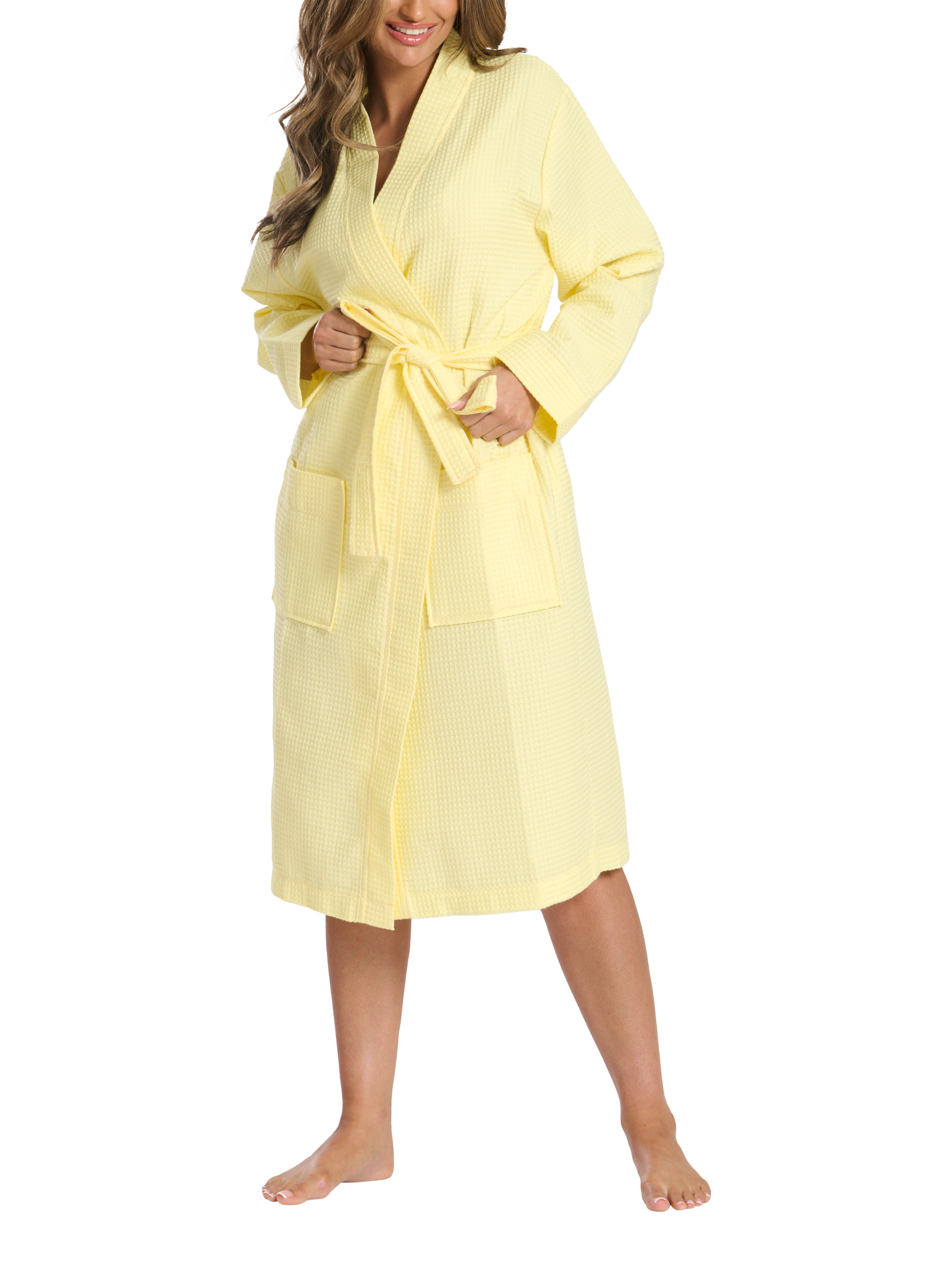 The Cotton Waffle Robe with Satin Piped Trim combines luxurious comfort with elegant design.