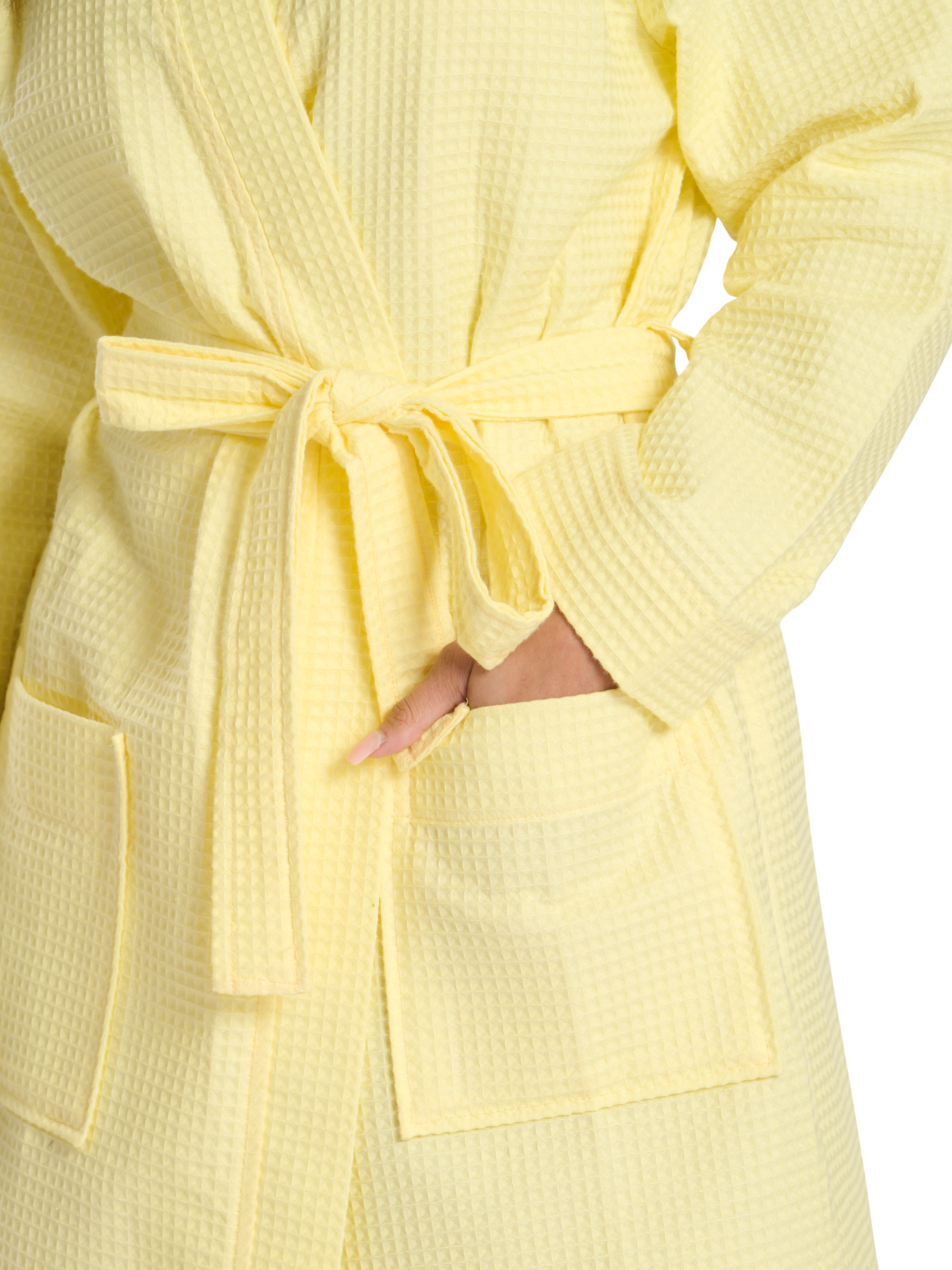 Made from soft, breathable cotton in a textured waffle weave, this robe is lightweight and absorbent, perfect for lounging or after a bath. The satin piped trim adds a sophisticated touch, elevating the robe's overall look. Featuring a cosy belt and practical pockets, this robe offers both style and functionality, making it a must-have addition to your loungewear collection. Ideal for relaxing in comfort while looking effortlessly chic.