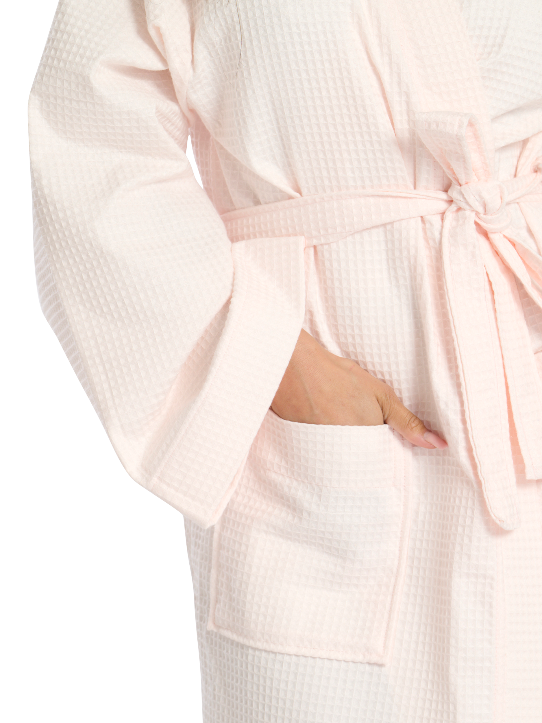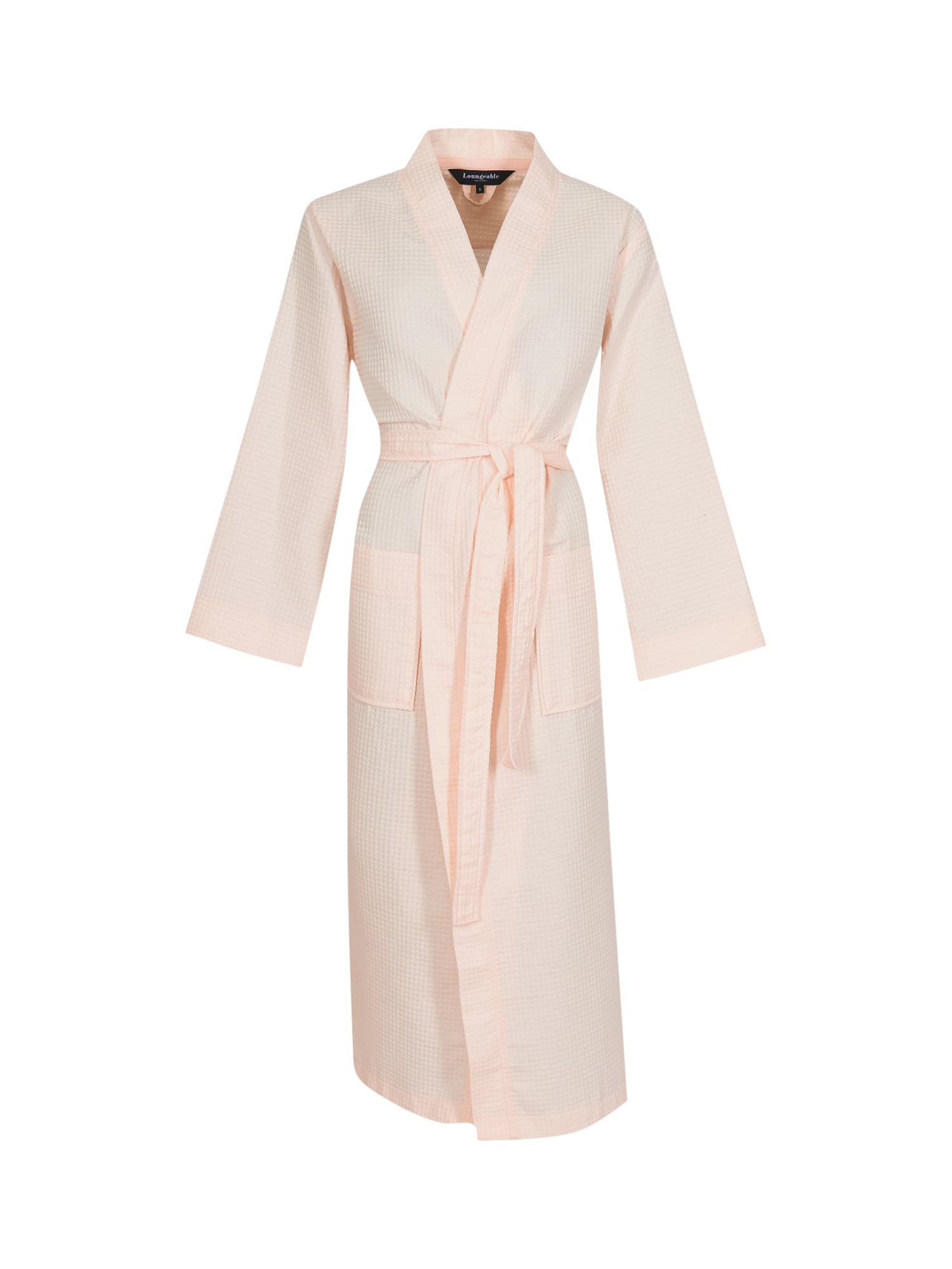 Made from soft, breathable waffle fabric, this robe features a long, flowing design that provides full coverage and ultimate comfort. The kimono-inspired sleeves add a touch of elegance, while the belt ensures a customisable fit. Perfect for lounging at home or wrapping up after a bath, this maxi-length robe combines functionality with a chic, sophisticated look, making it a must-have for your loungewear collection.