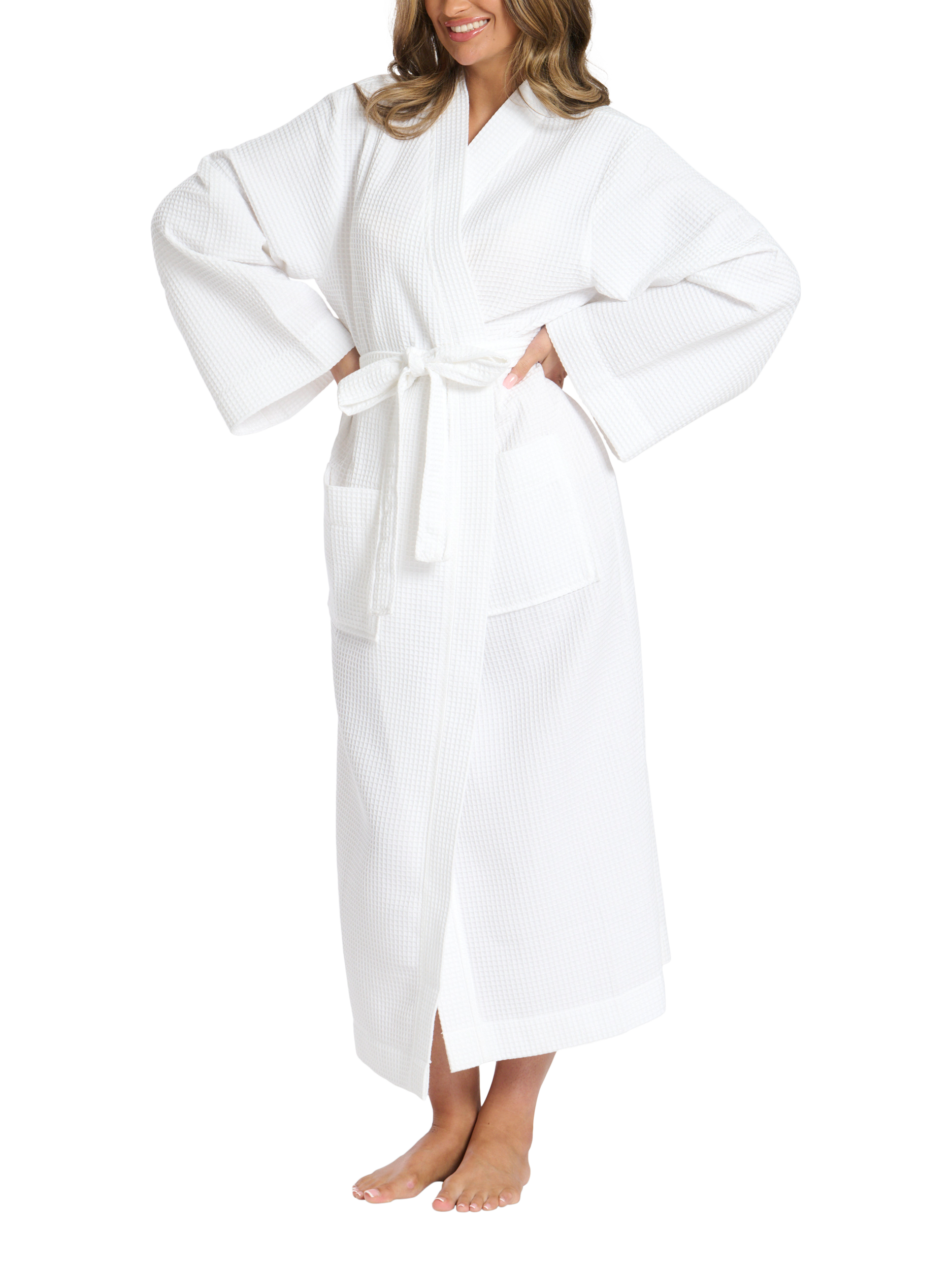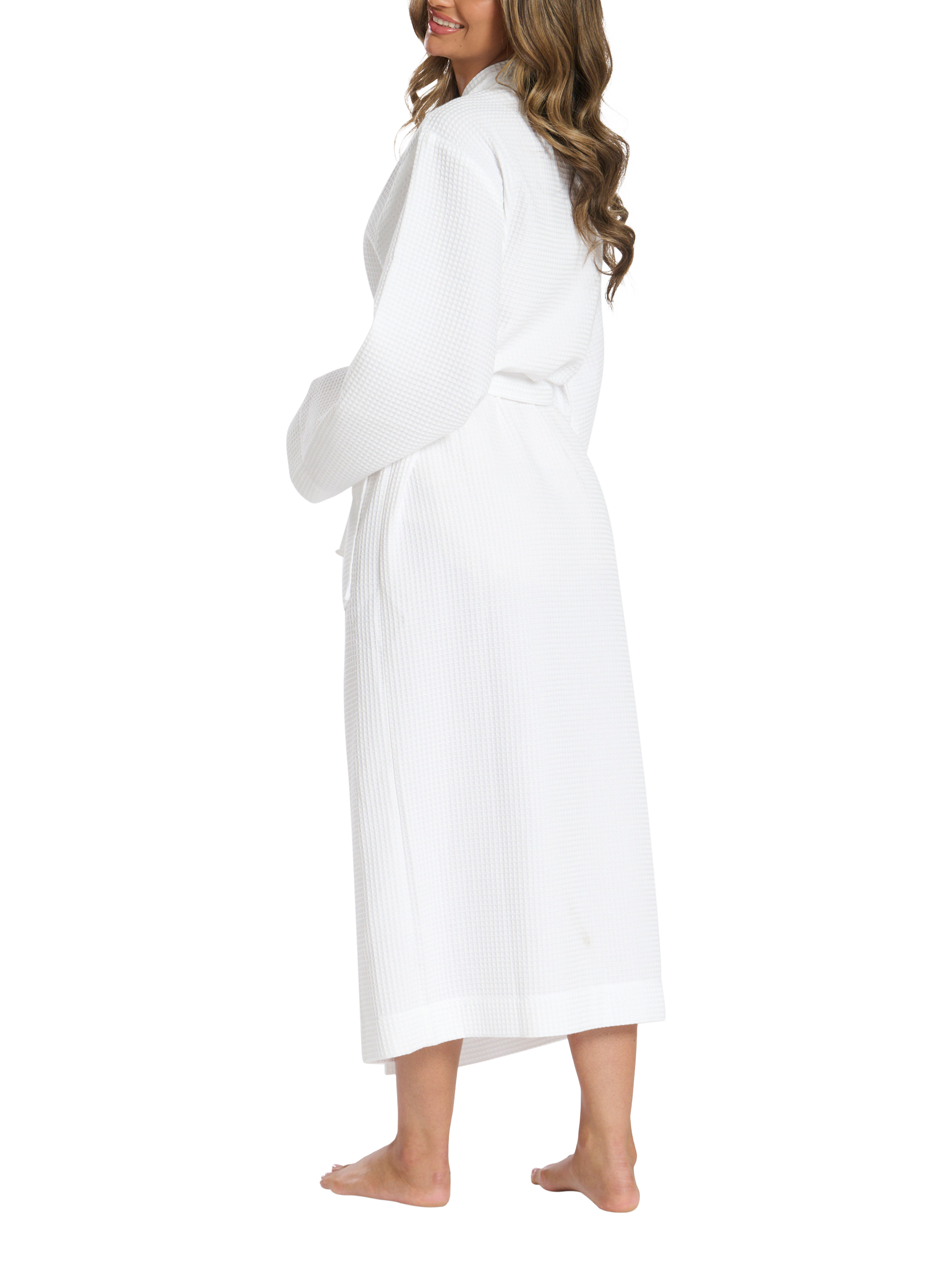 The Maxi Length Waffle Kimono Robe offers a luxurious and relaxed fit with timeless style.