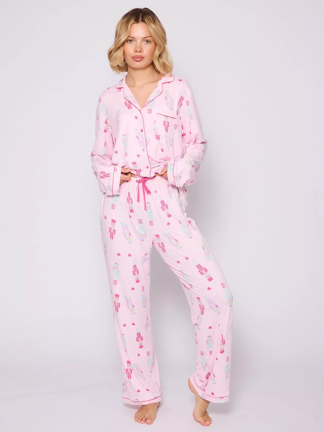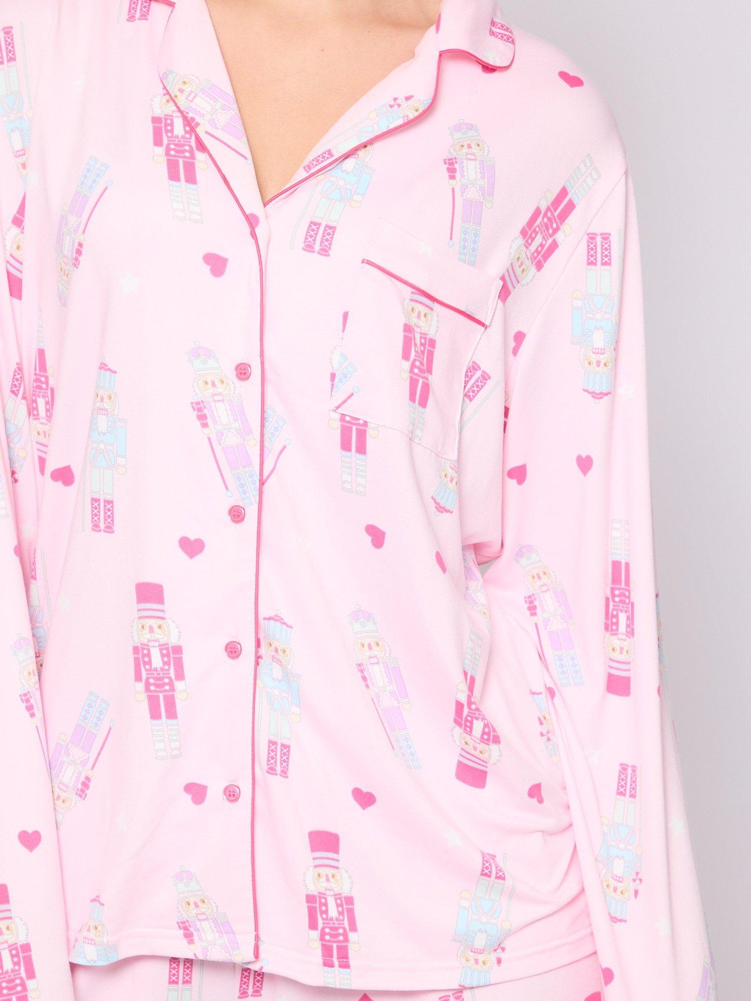LoungeableNutcracker Button Shirt and Long Trousers Pyjamas Set, Pink
