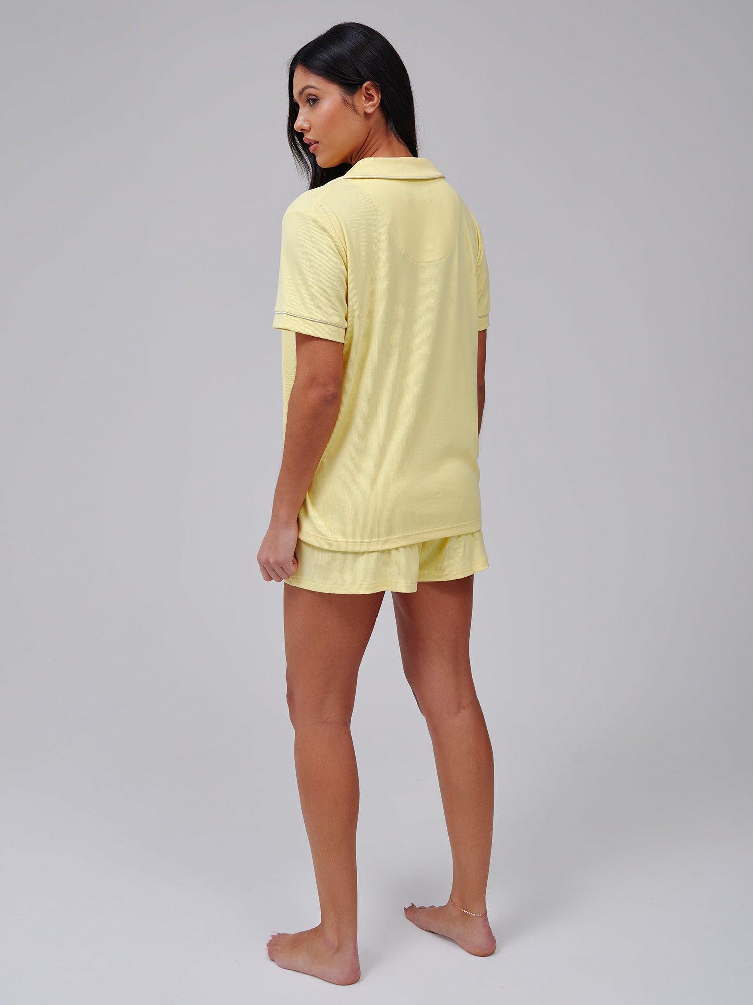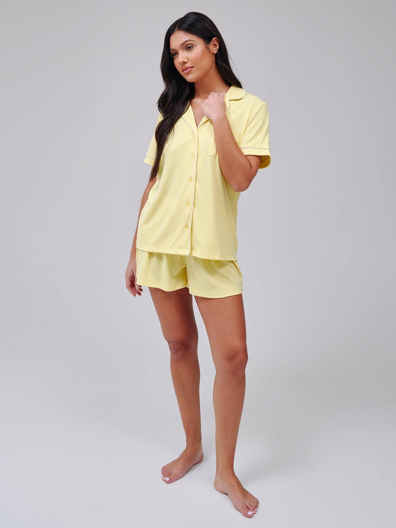 LoungeableRibbed Jersey Button Down Short Pyjama Set, Yellow