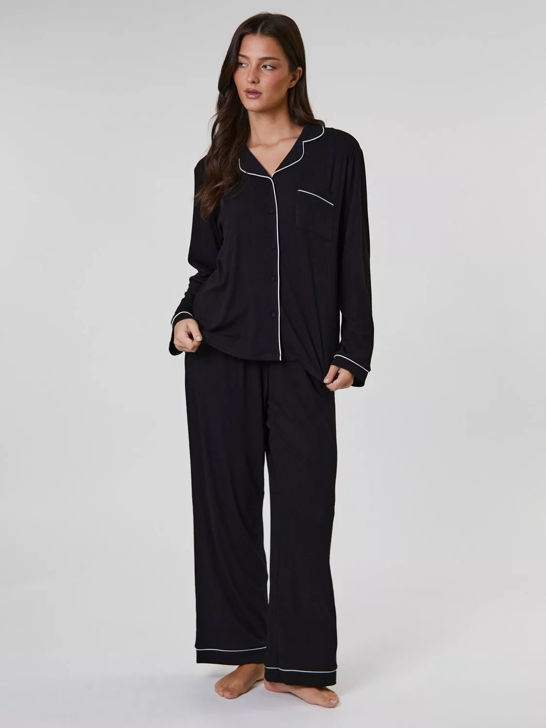 A simple choice to help you settle into your night-time routine, this piped shirt pyjama set is made from a super soft fabric blend with long bottoms.
