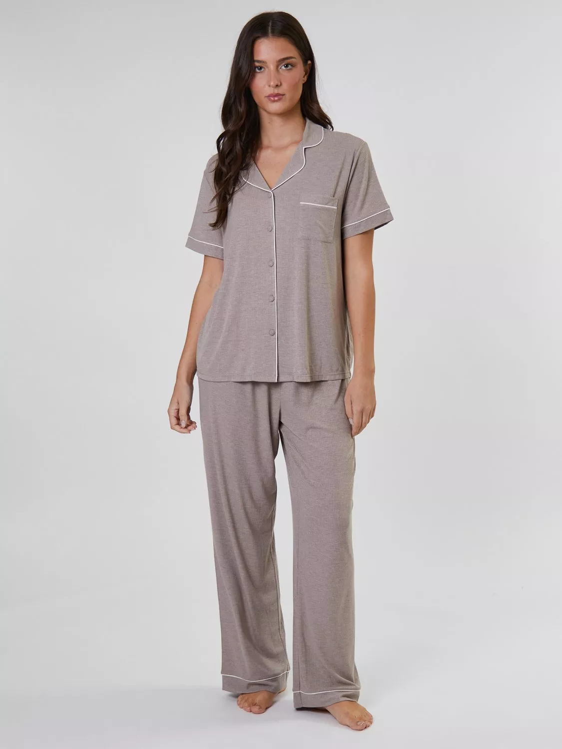 A comfortable addition to bedtime ensembles, this short-sleeve shirt pyjama set is made from a durable blend with matching bottoms.