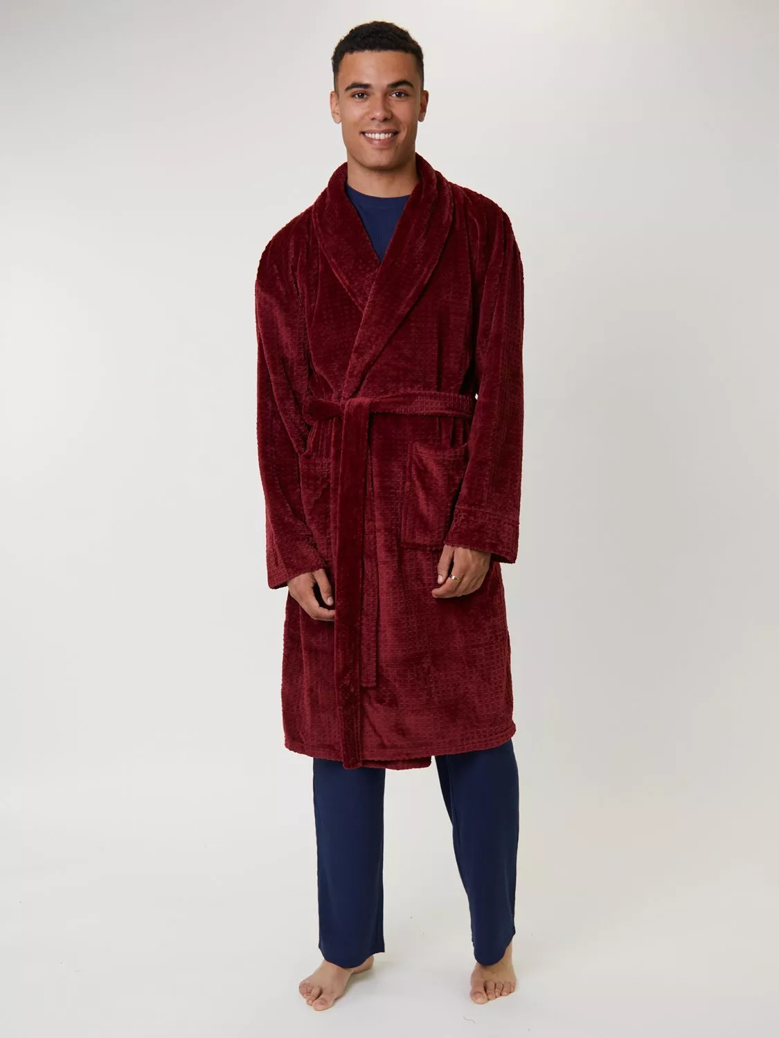 LoungeableWaffle Cut Fleece Shawl Collar Dressing Gown