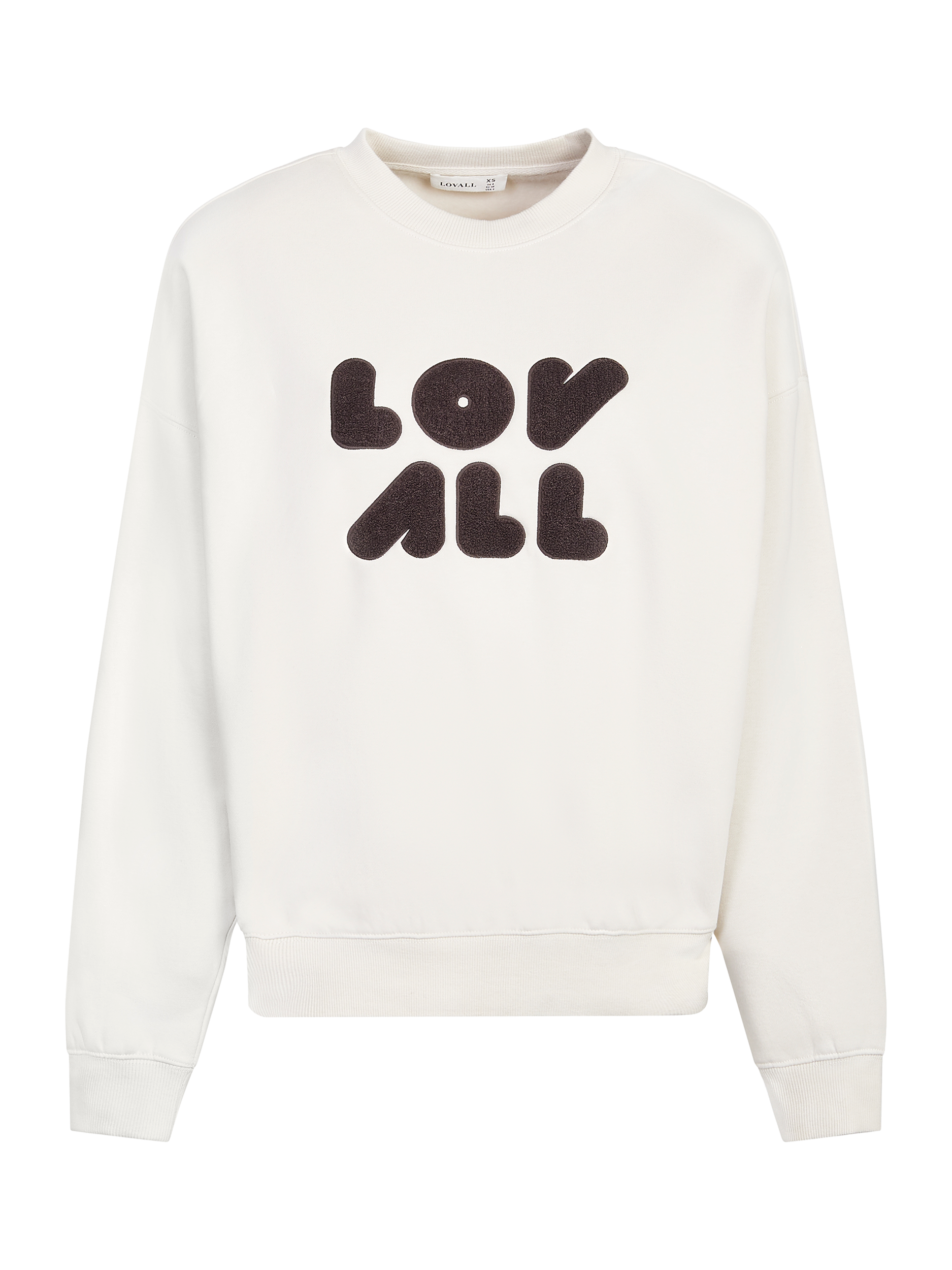 This cosy sweatshirt features LOVE ALL in a bold, bubble-letter design, making a subtle yet powerful statement. It's the perfect relaxed piece for effortlessly cool style and ultimate comfort.