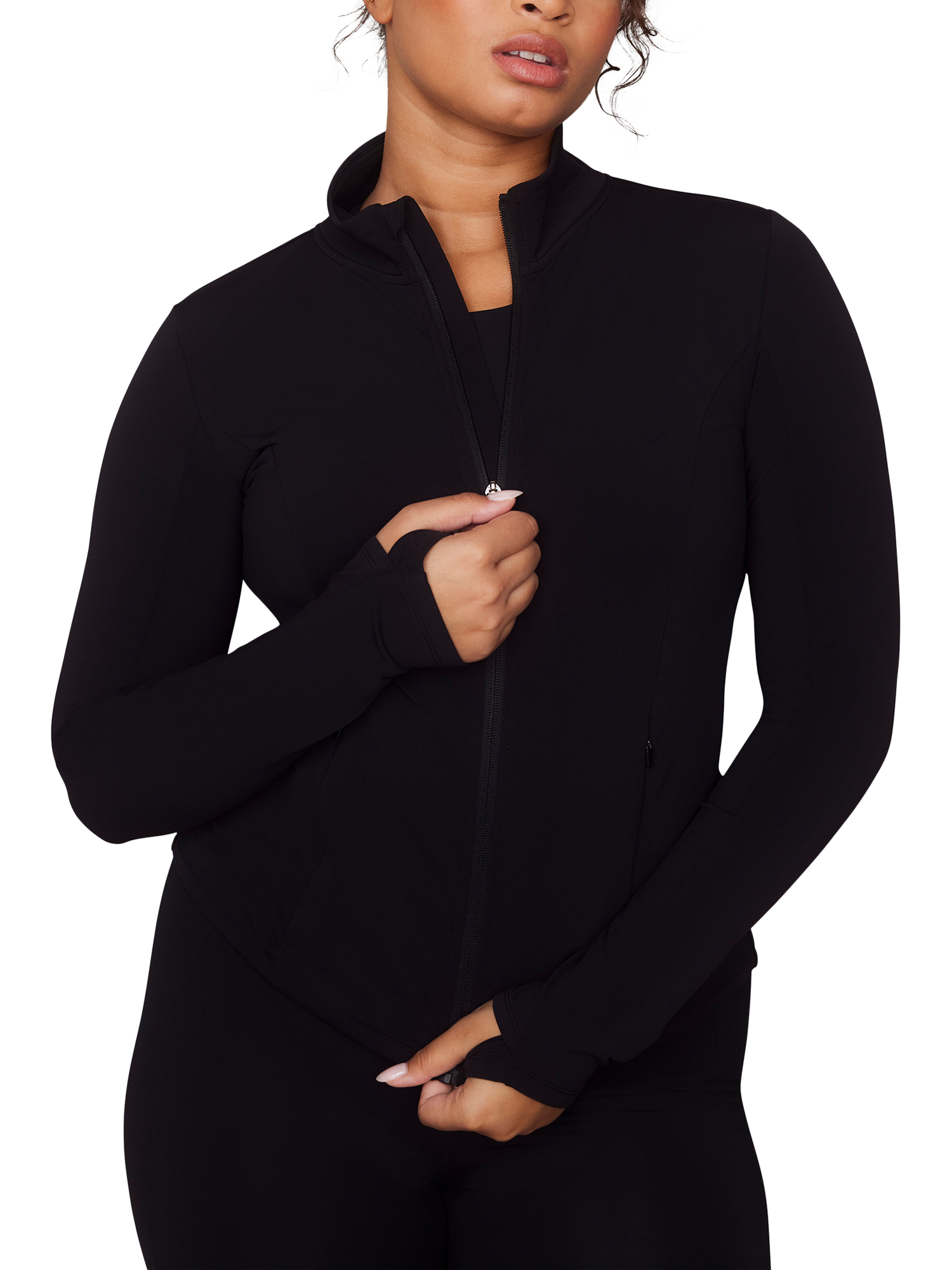 Designed to accompany you when getting active in chilly climates and drizzly rain. The compression fabric and 4-way stretch qualities provide support. With a flattering fit that moulds to your body.