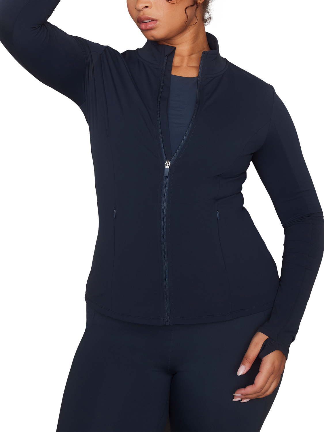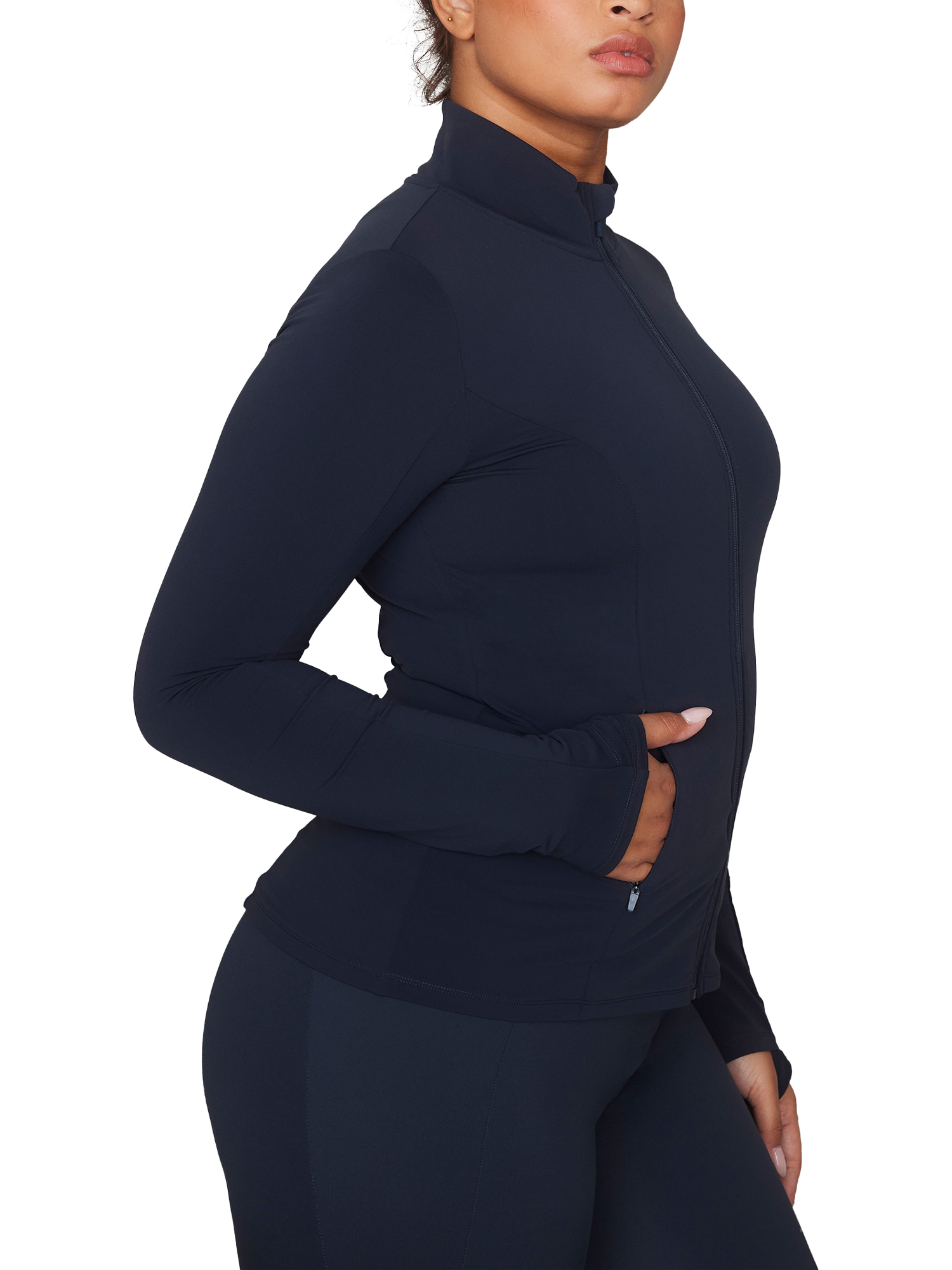 Designed to accompany you when getting active in chilly climates and drizzly rain. The compression fabric and 4-way stretch qualities provide support. With a flattering fit that moulds to your body.