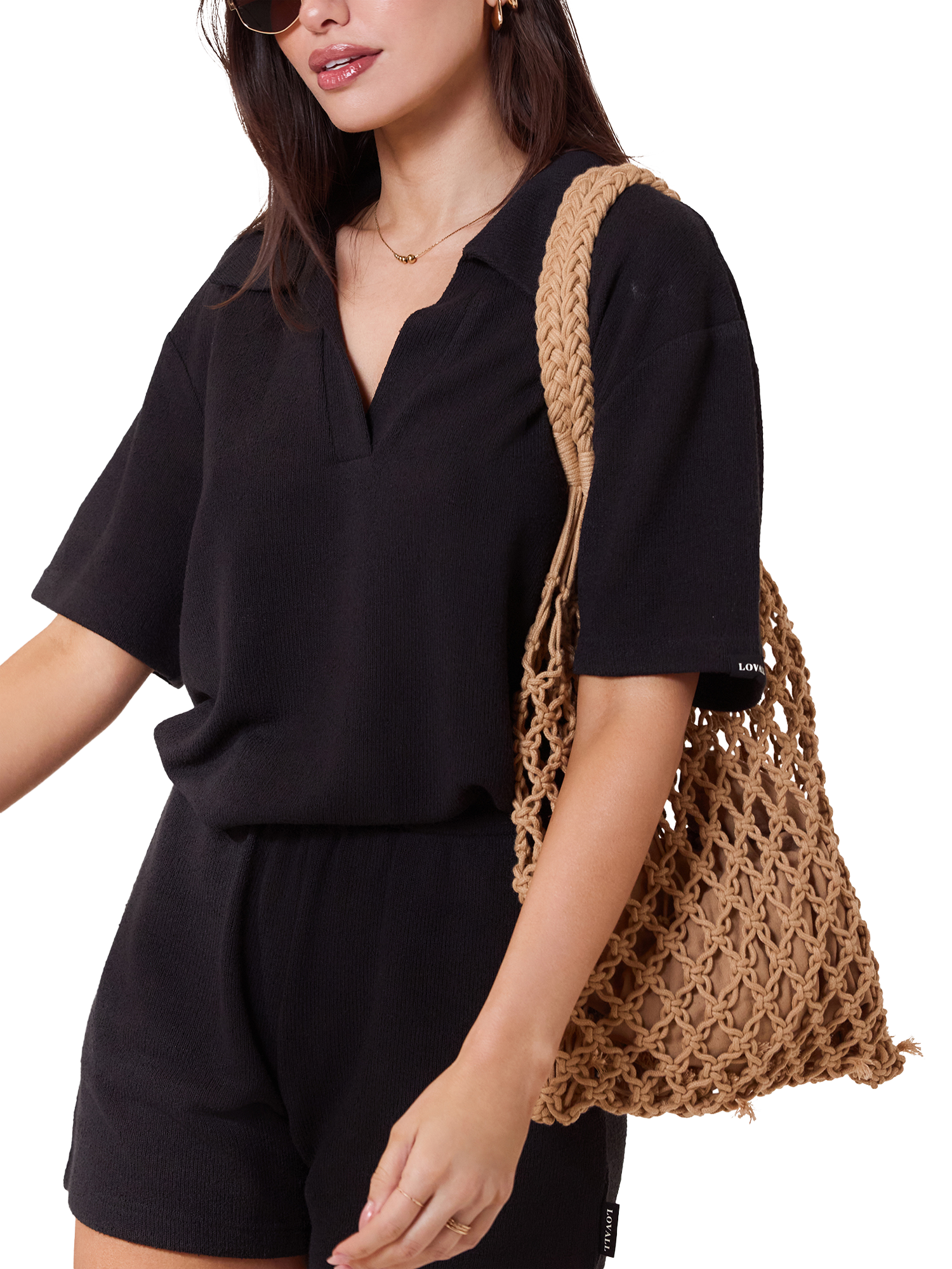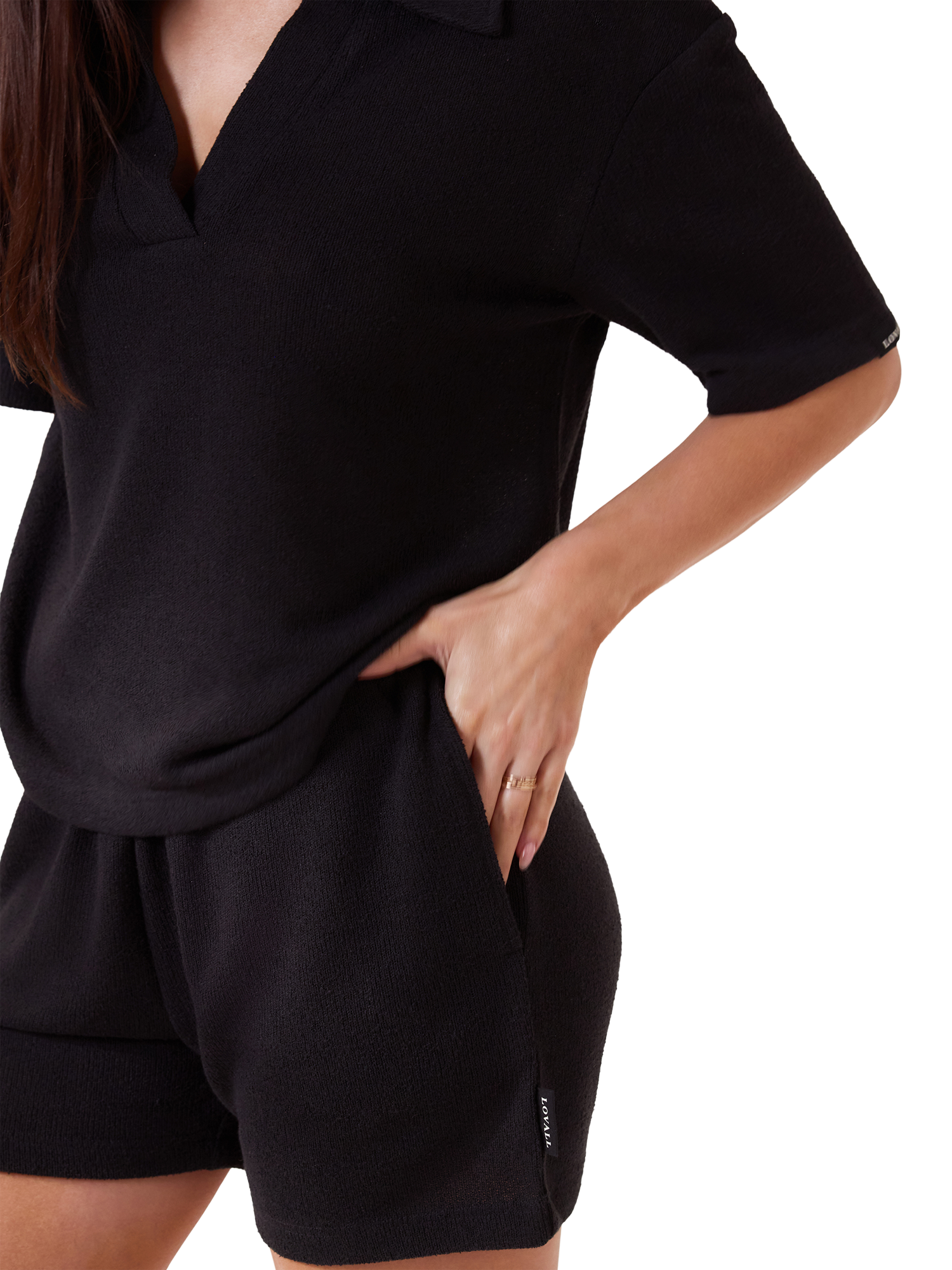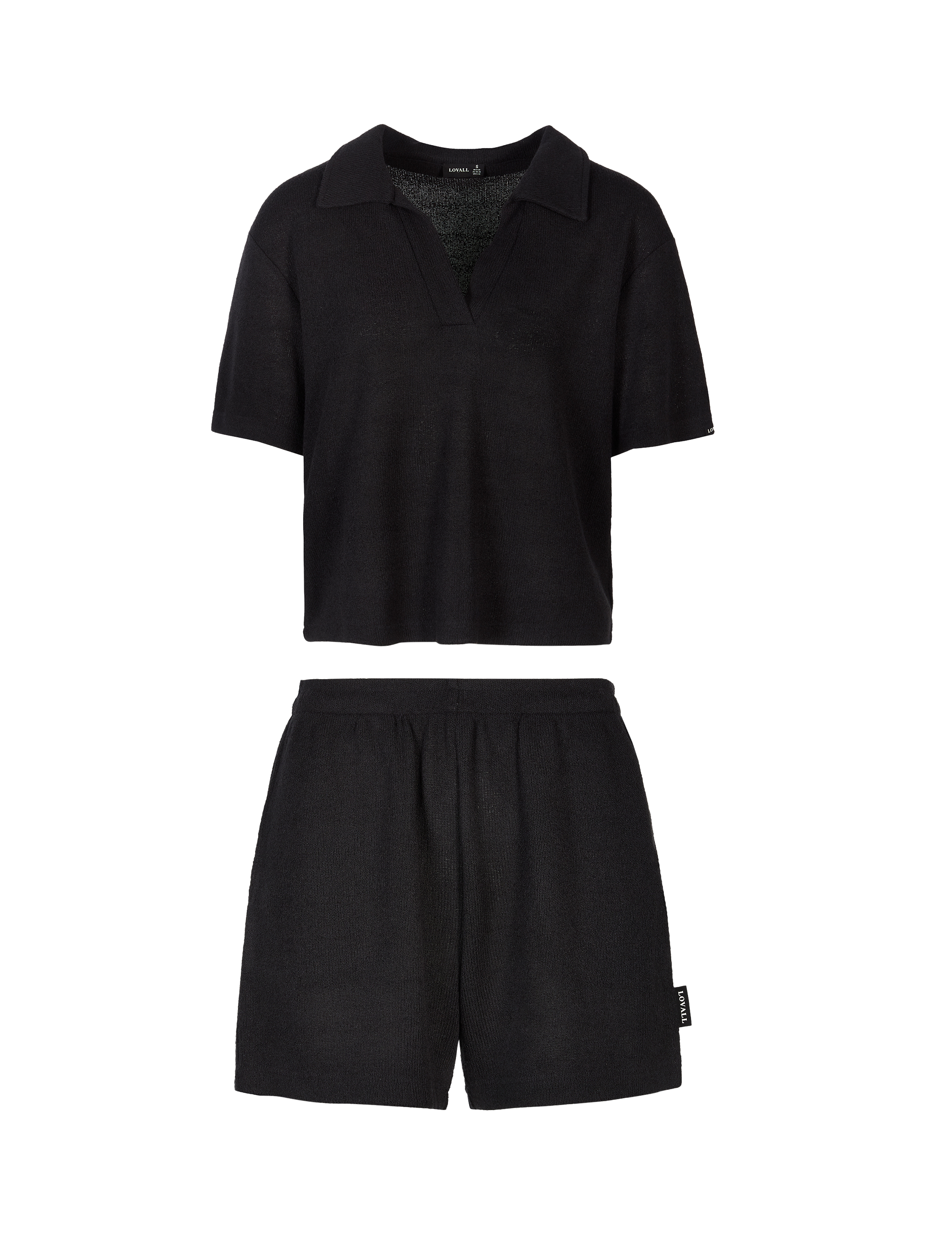 LovallLightweight Collar Knit Short Set, Black Coffee