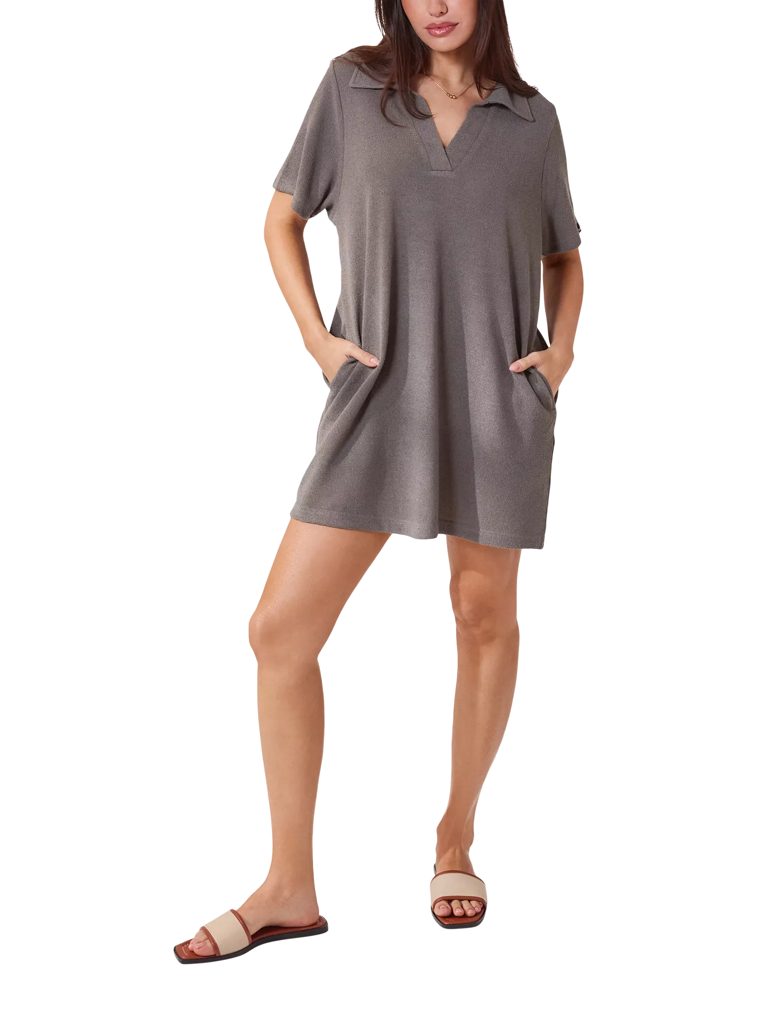 Crafted from a breathable, soft knit fabric with a lightweight finish. Featuring stylish side pockets on the shorts. Relaxed fit, perfect for summer style or beachwear. On-trend details with a slight drop shoulder and a V-neck collar.