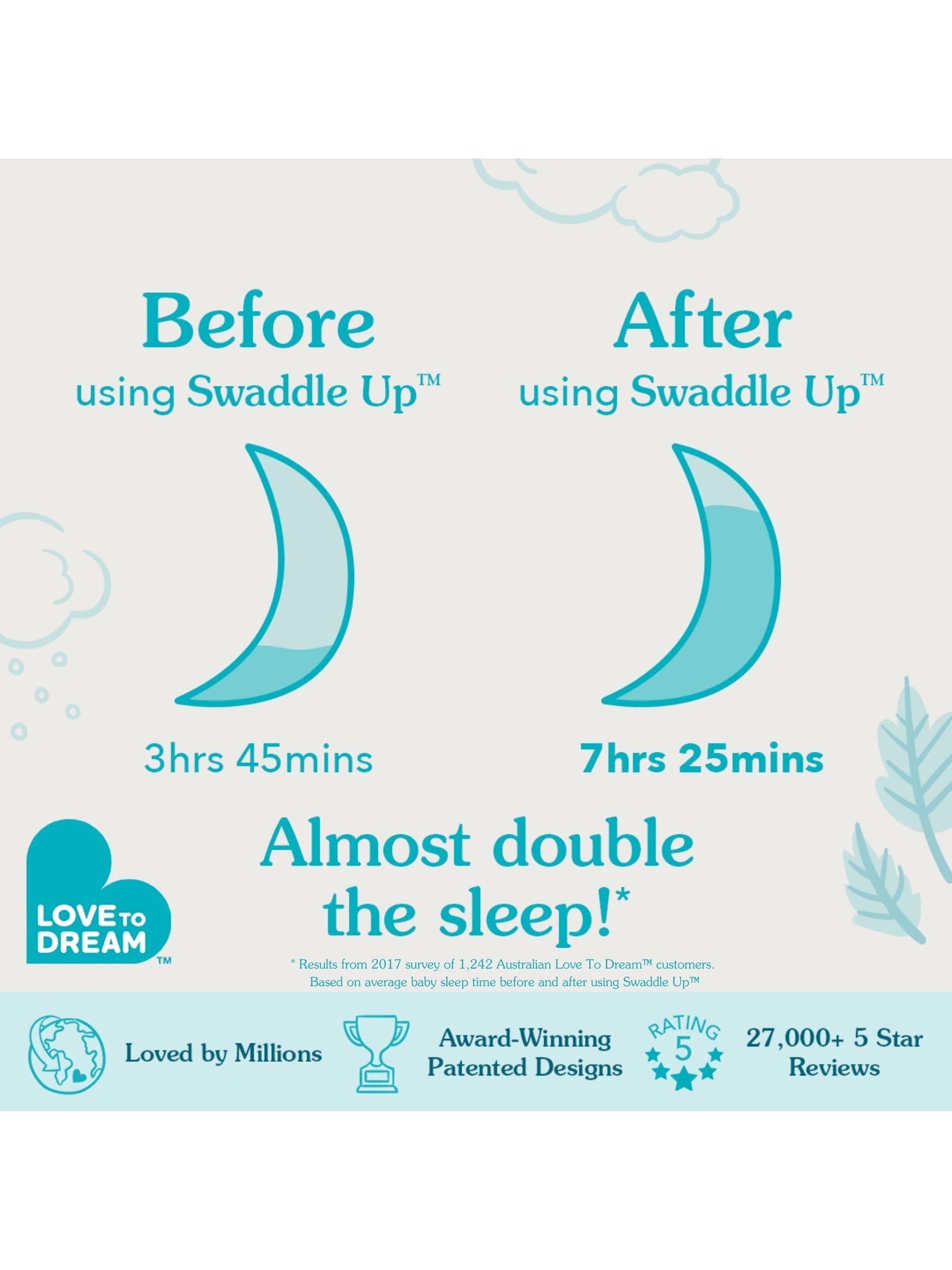 The multi-award-winning Swaddle Up™ is designed to support your baby’s natural arms-up™ sleep position, giving them access to their hands for safe self-soothing. With its hip-healthy design and innovative wings, Swaddle Up™ has been shown to nearly double sleep duration for many babies.* The Swaddle Up™, with its unique wing design, encourages this safe self-soothing behaviour, leading to a more settled baby—and more restful sleep.