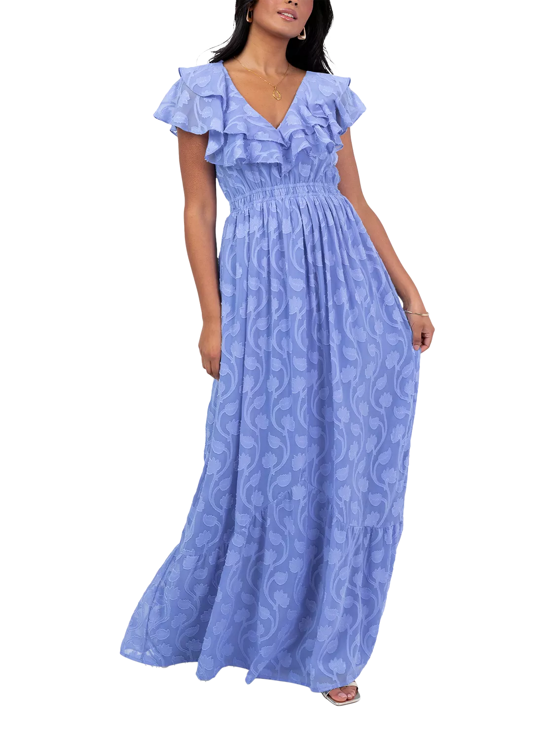 Defined by intricate floral embroidery, this Lovedrobe maxi dress also features frills at the neckline that add another welcome dose of femininity.