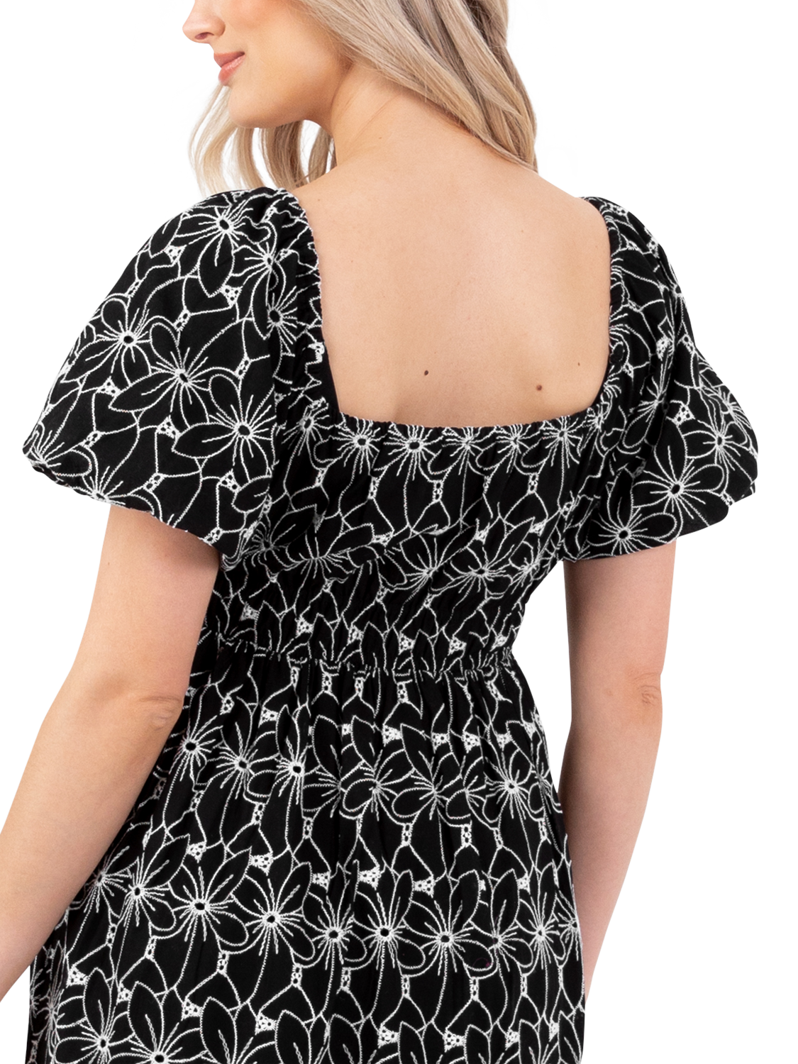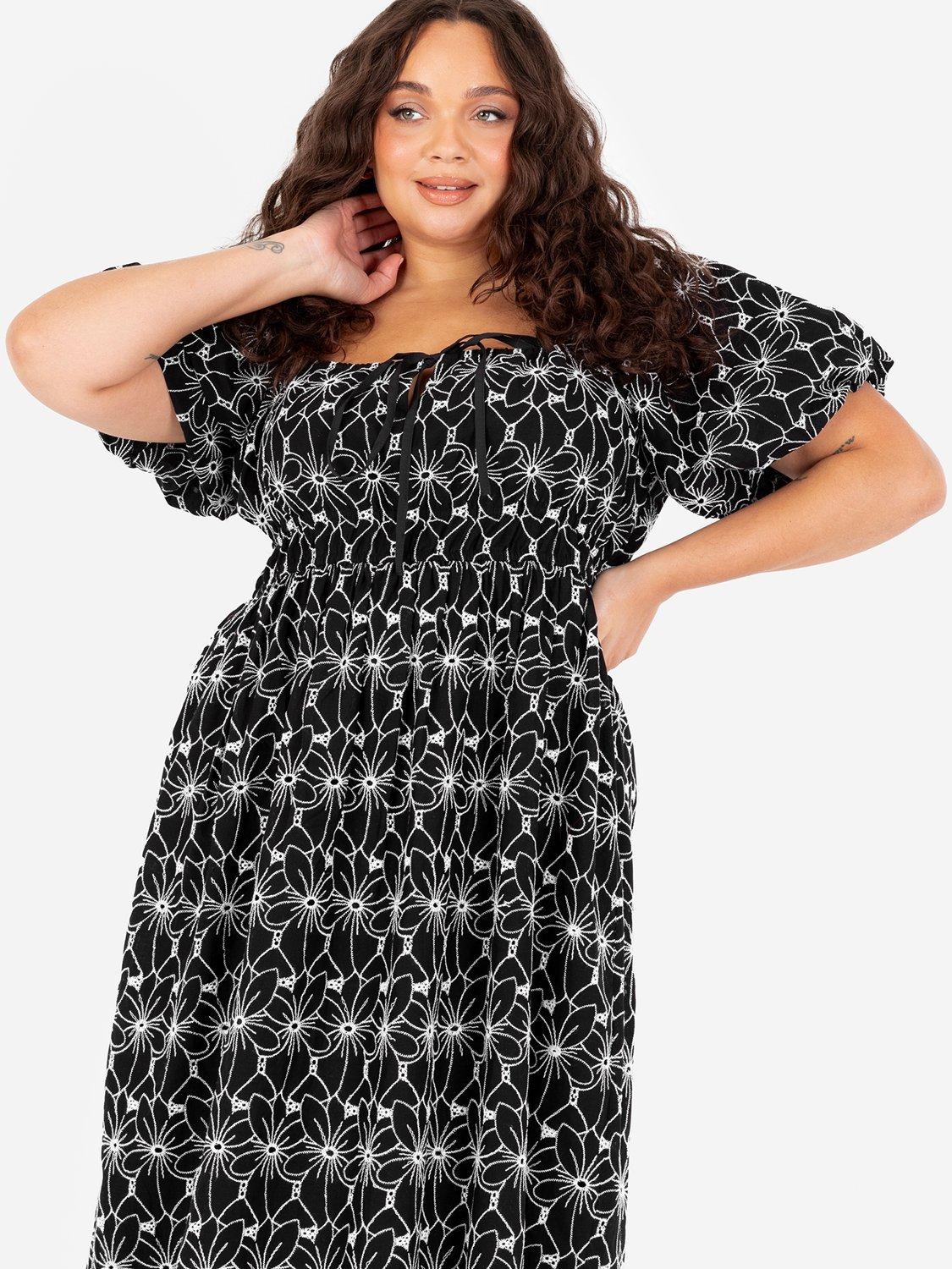 Featuring a square neckline and short sleeves, this Lovedrobe midi dress also benefits from the addition of a statement-worthy monochrome pattern.