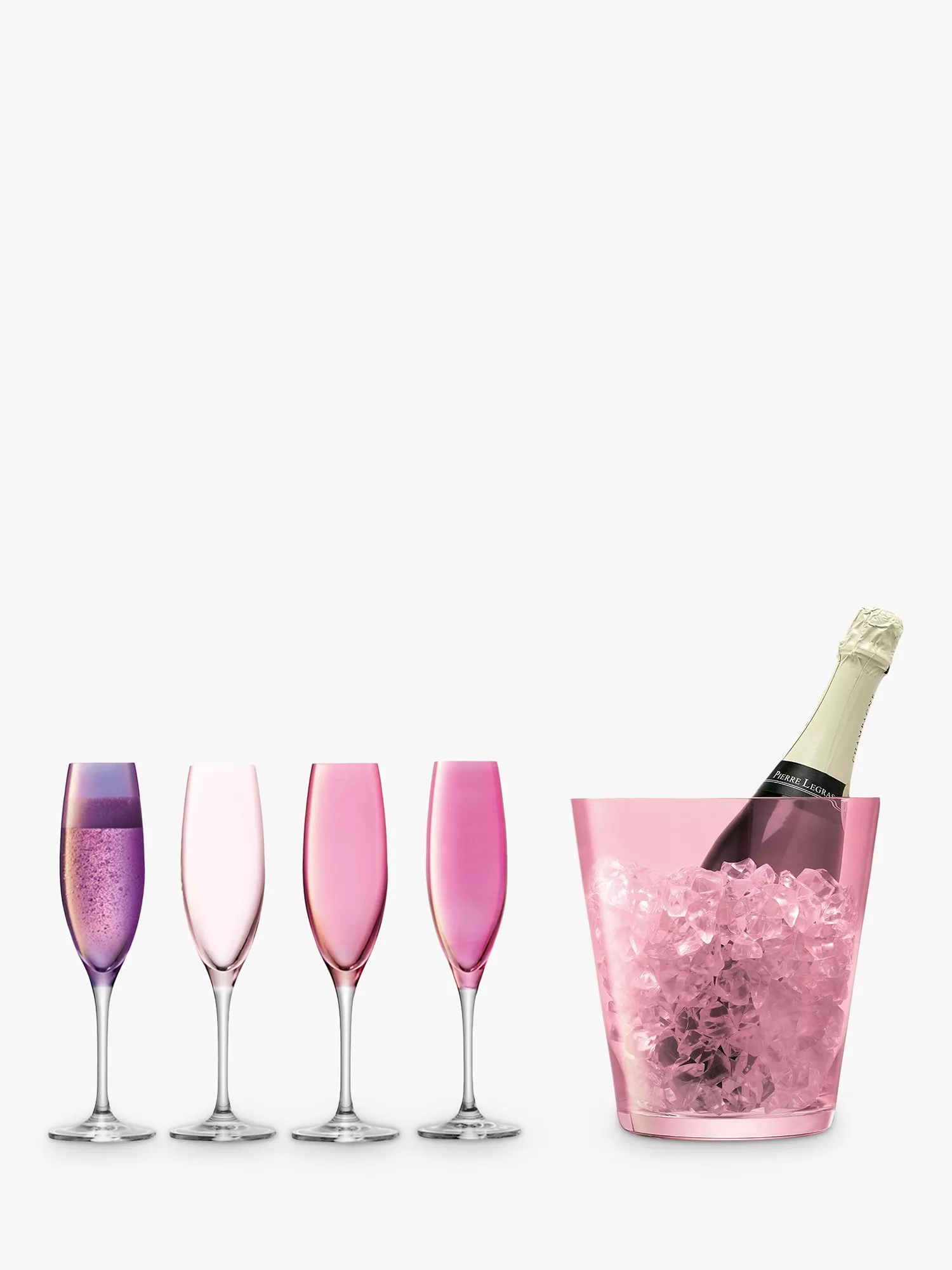 LSA International4 Champagne Flutes & Ice Bucket Gift Set, Pink