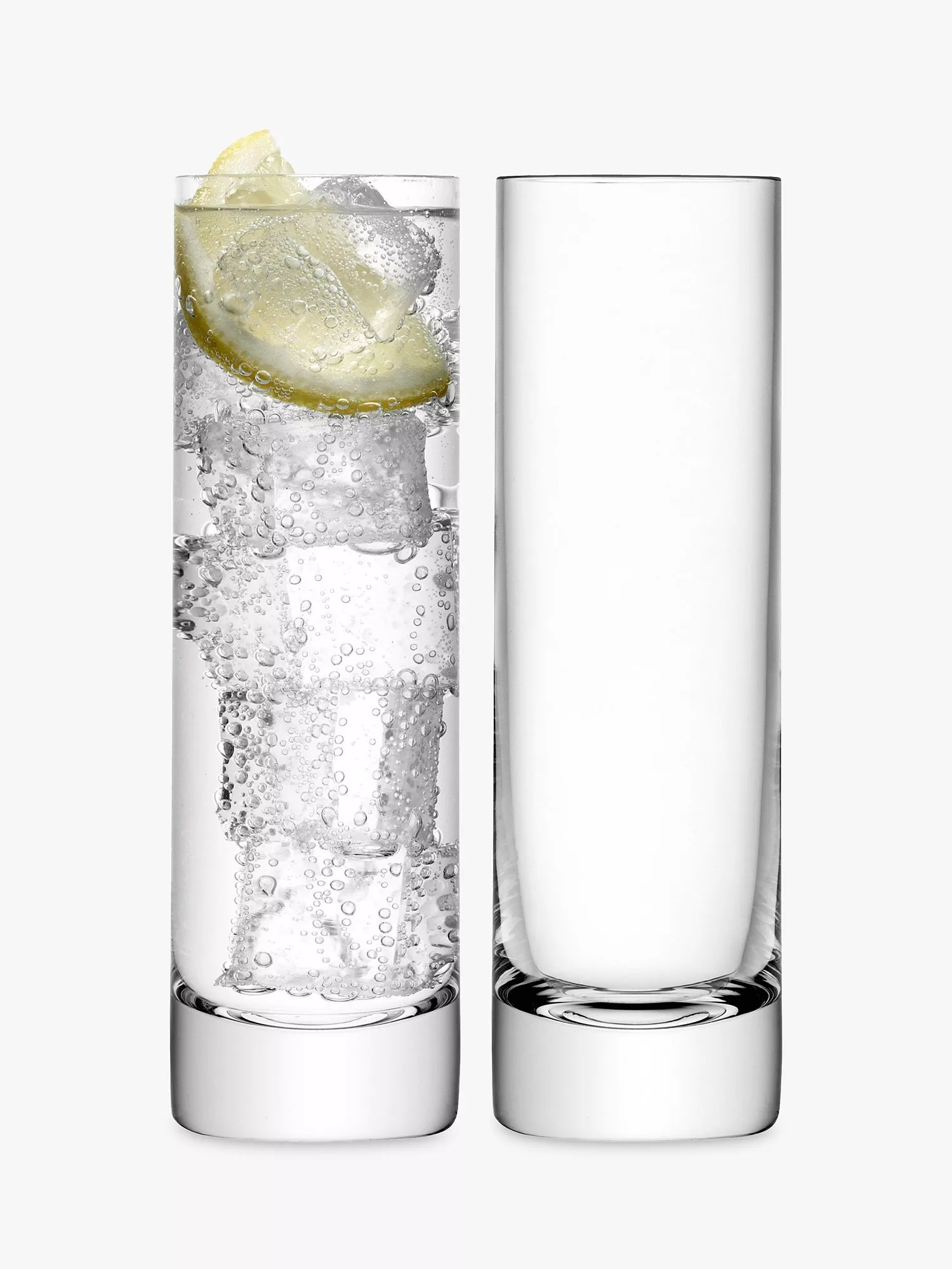 Timeless, elegant and handmade from high-quality glass, this pair of long-drink cocktail glasses are from the LSA International Bar collection.