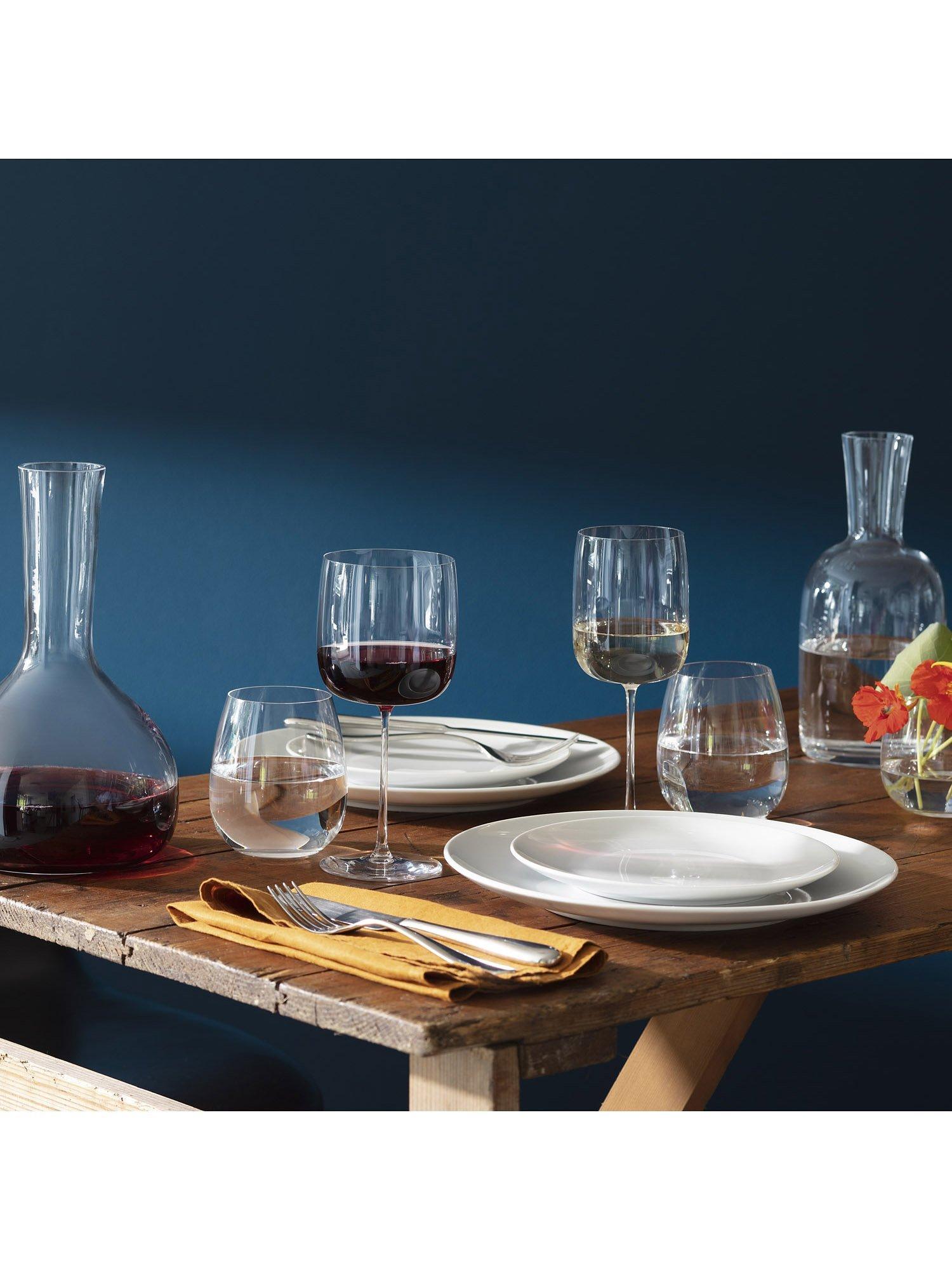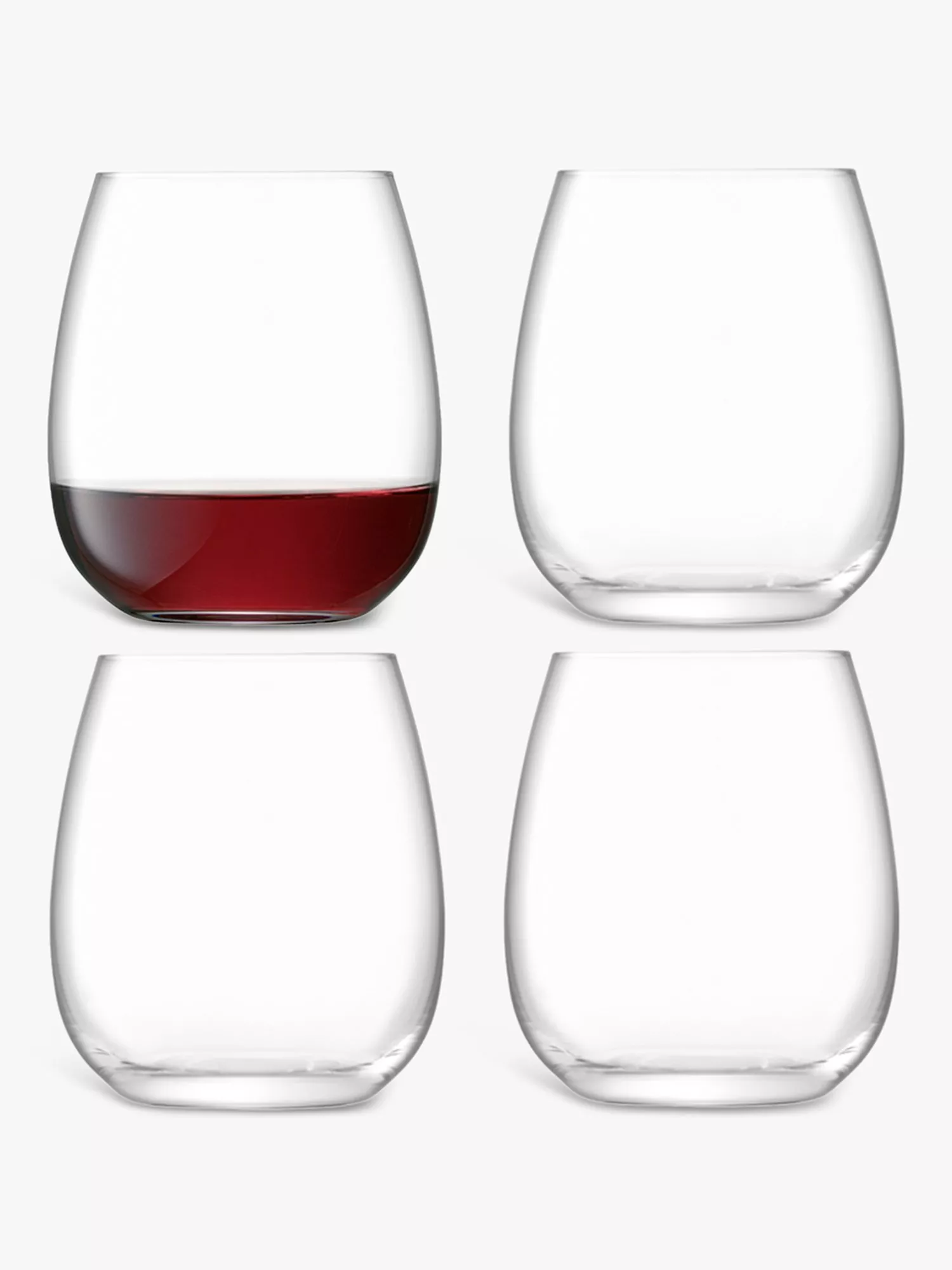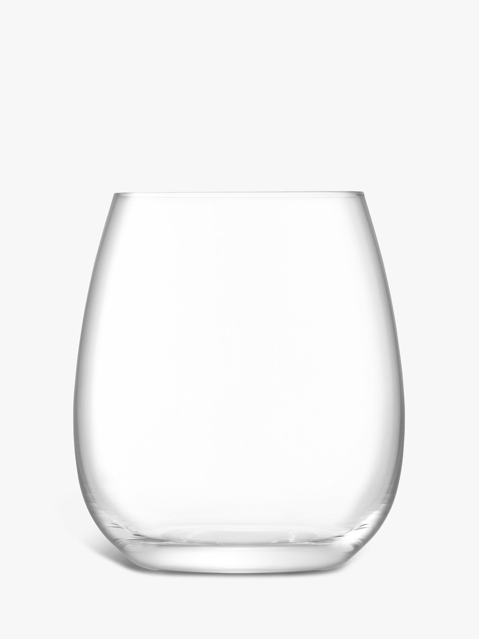 Dishwasher safe, this set of four glasses are made of lead-free crystalline glass for brilliance, clarity and resilience. A stemless design with a curved bowl for enjoying red wine as well as water and cocktails.