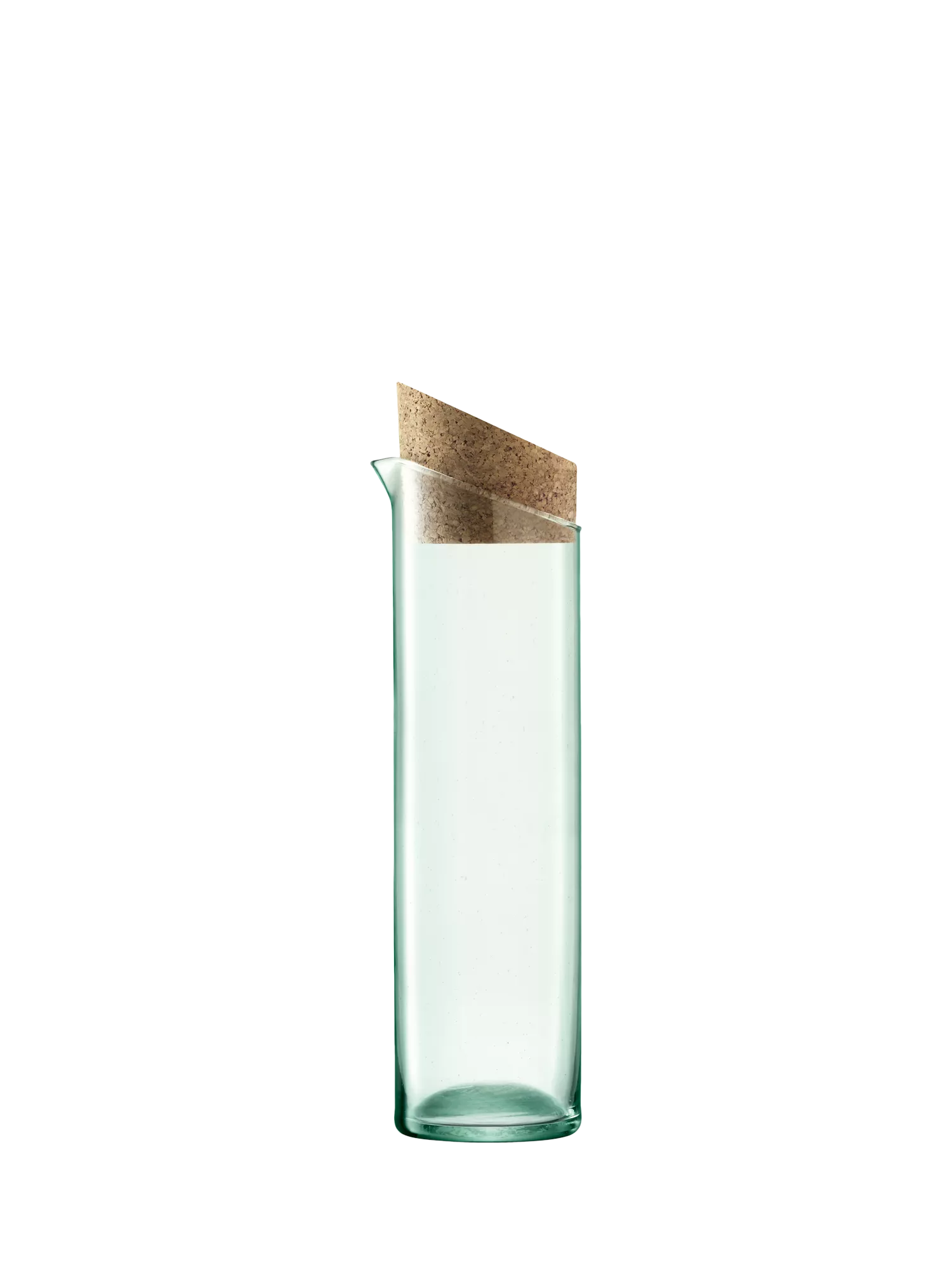 A versatile carafe with a domed base, handmade from glass and fitted with a stopper in a composite material made from natural cork granules.
