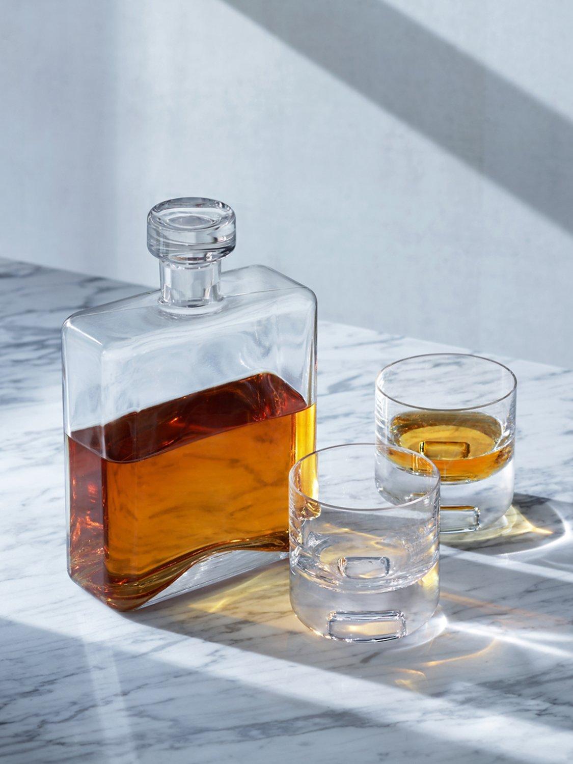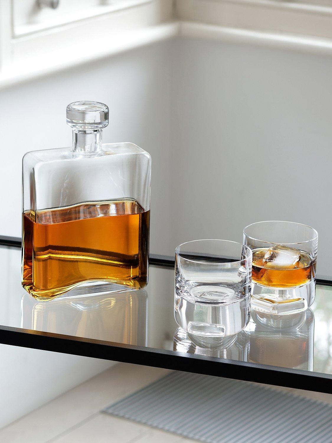 A giftable set from LSA International's Cask Whisky collection, expertly made in Poland. A contemporary design, the oblong decanter is made of mouthblown glass with a matching stopper. It comes with a pair of heavy-base tumblers, for whisky connoisseurs.