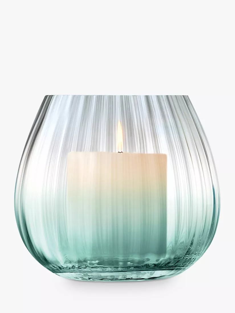 A mouth-blown lantern with a fluted texture, hand painted by skilled craftspeople with a gorgeous lustre. The sheer colours diffuse towards the centre of the lantern which is supplied with an unscented, textured pillar candle with a burn time of up to 6 hours.