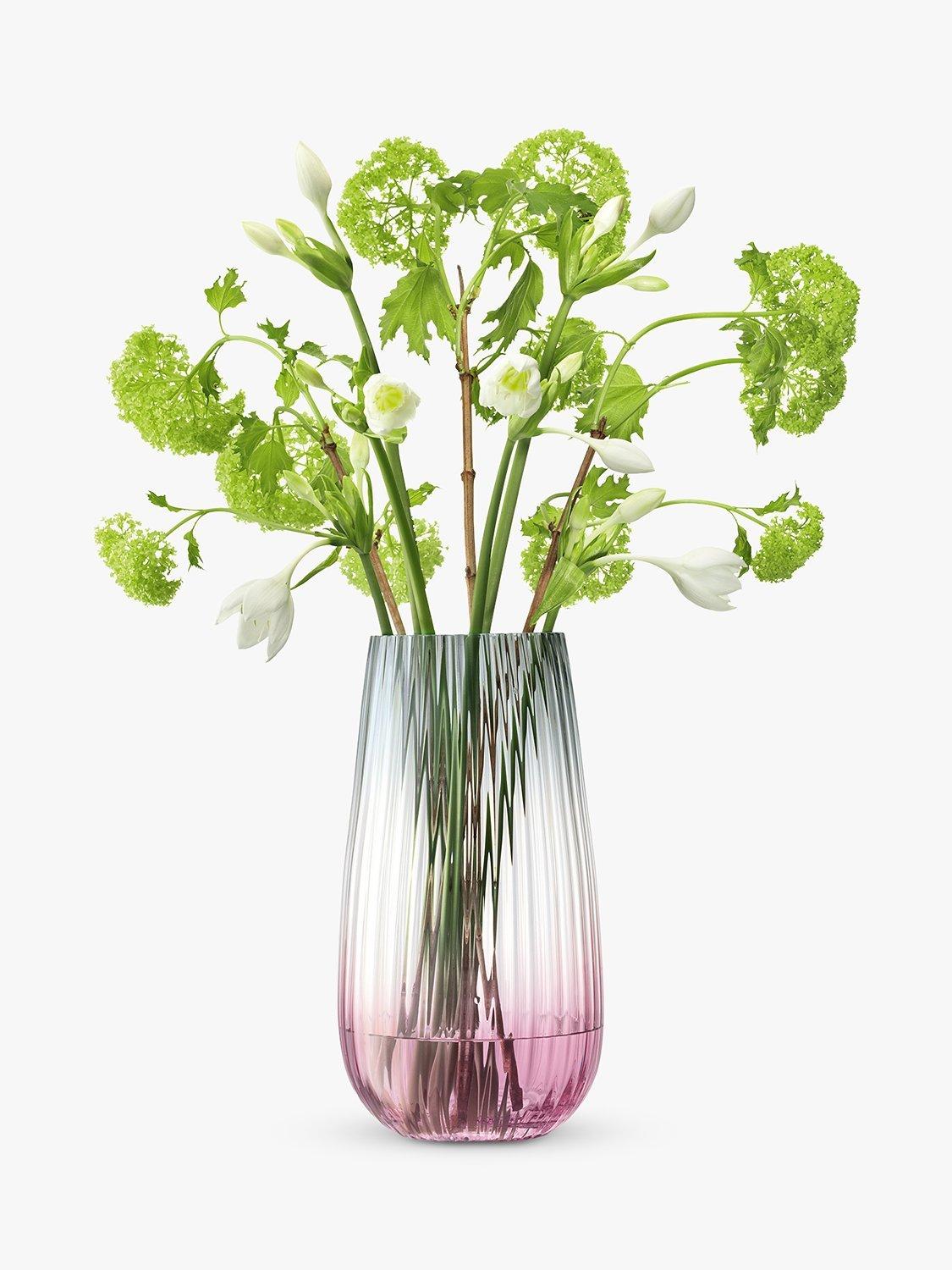 Inspired by the colours of a twilight sky dissolving into darkness as the sun sets, the handpainted lustre on the LSA International Dusk vase has an iridescent effect, enhancing the optic texture of the mouthblown glass.