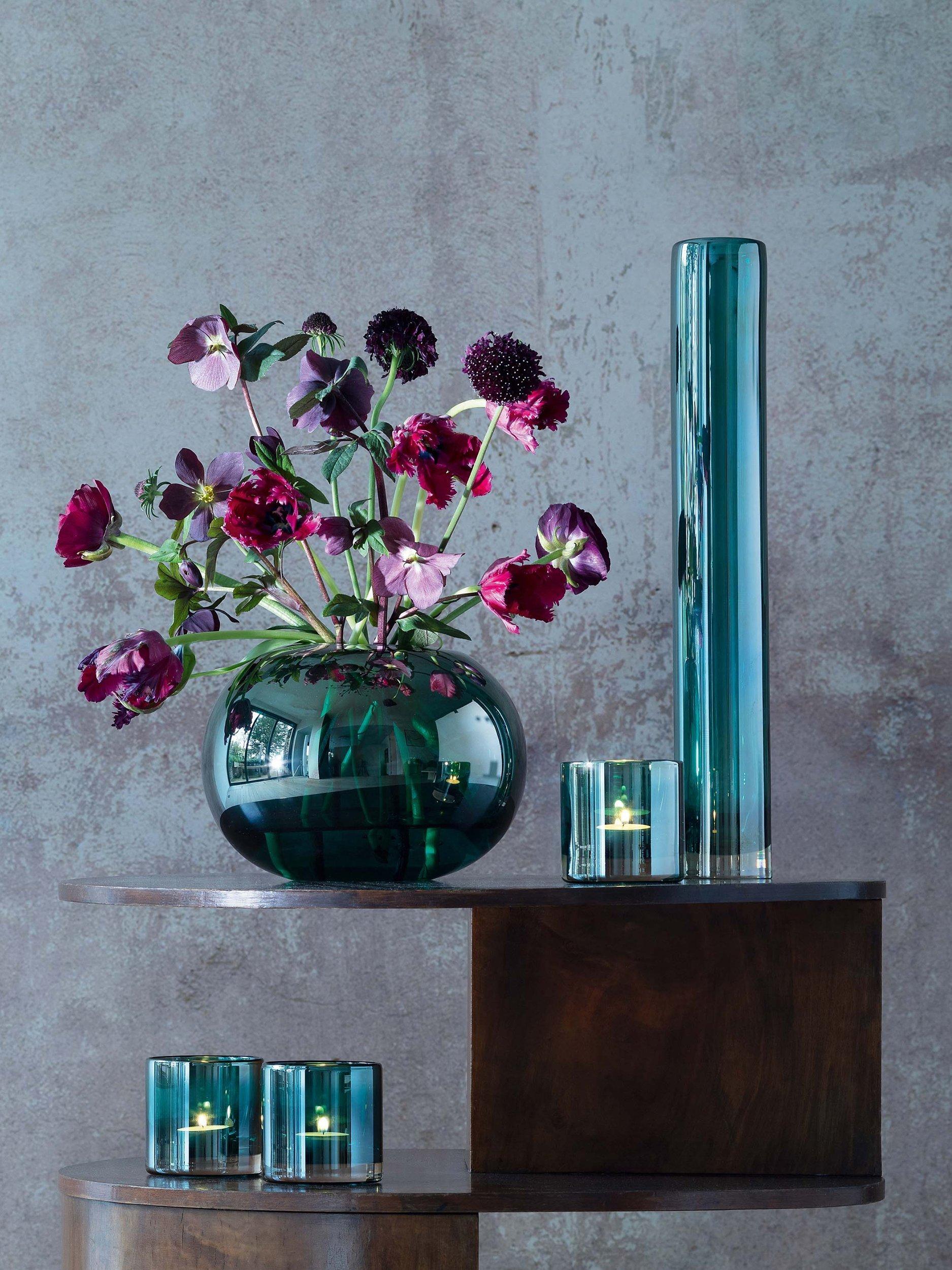Part of the Epoque range of vases and candle holders from LSA International, the height of this vase and peacock colour make it a statement piece for your home.