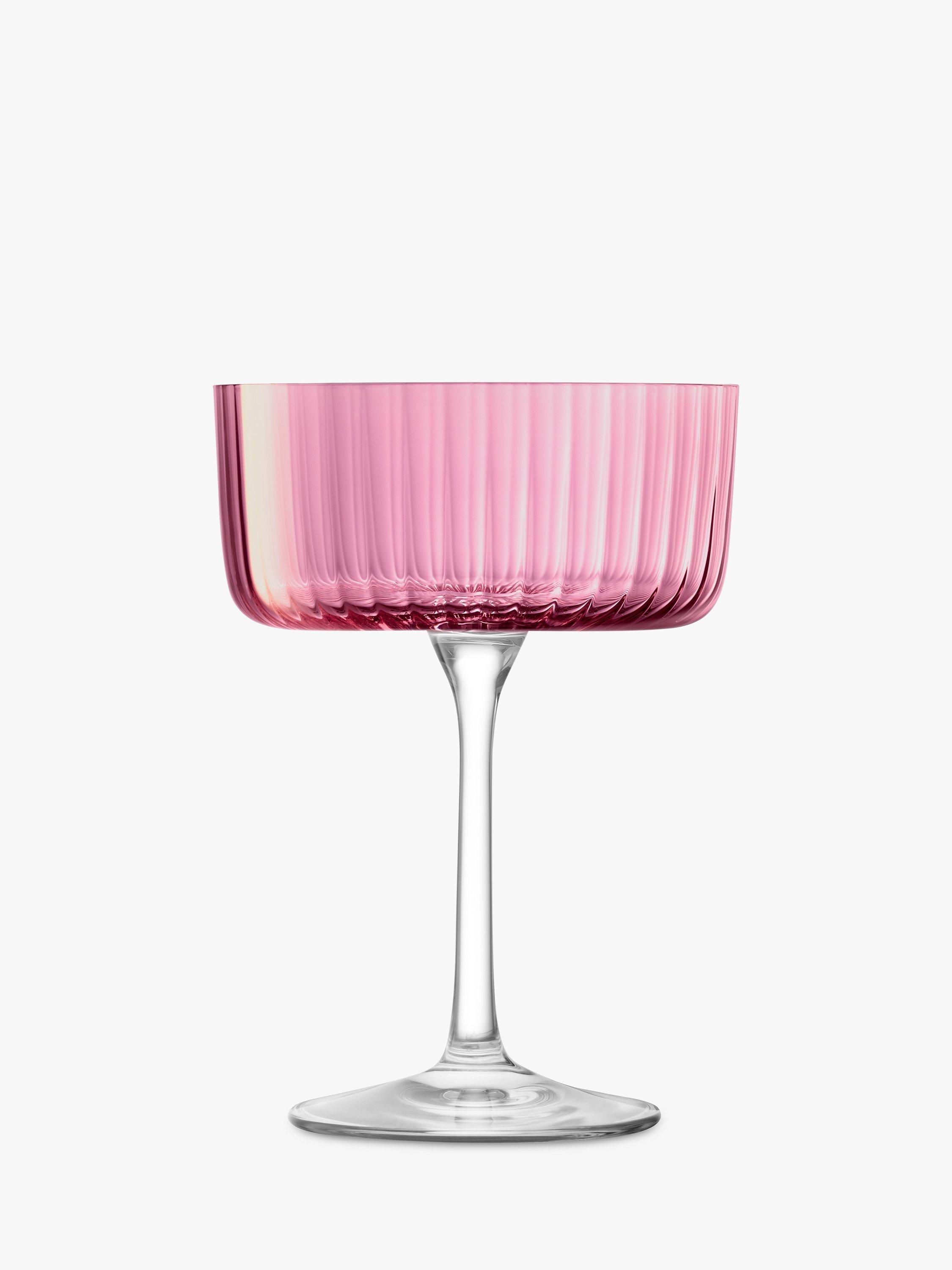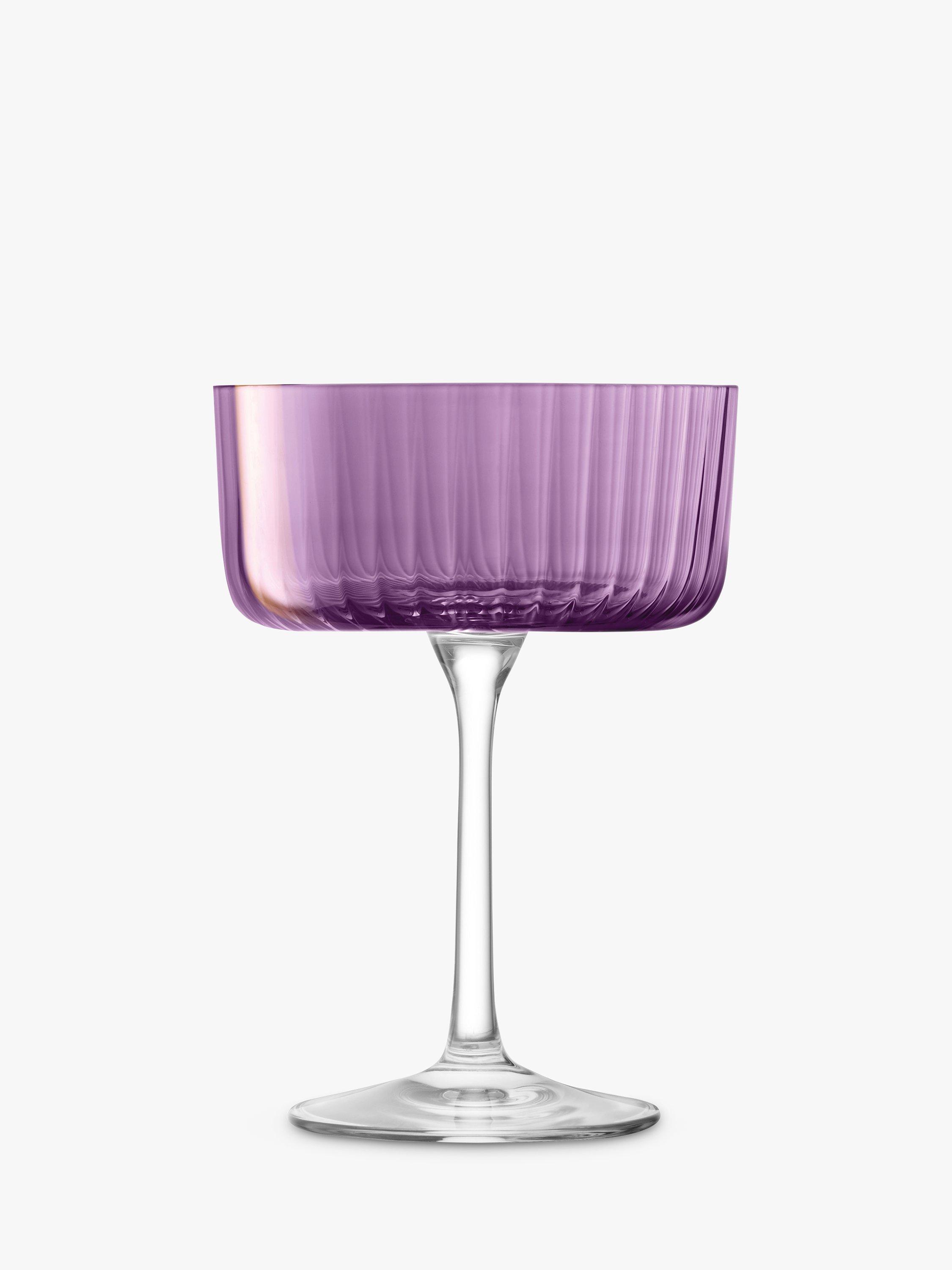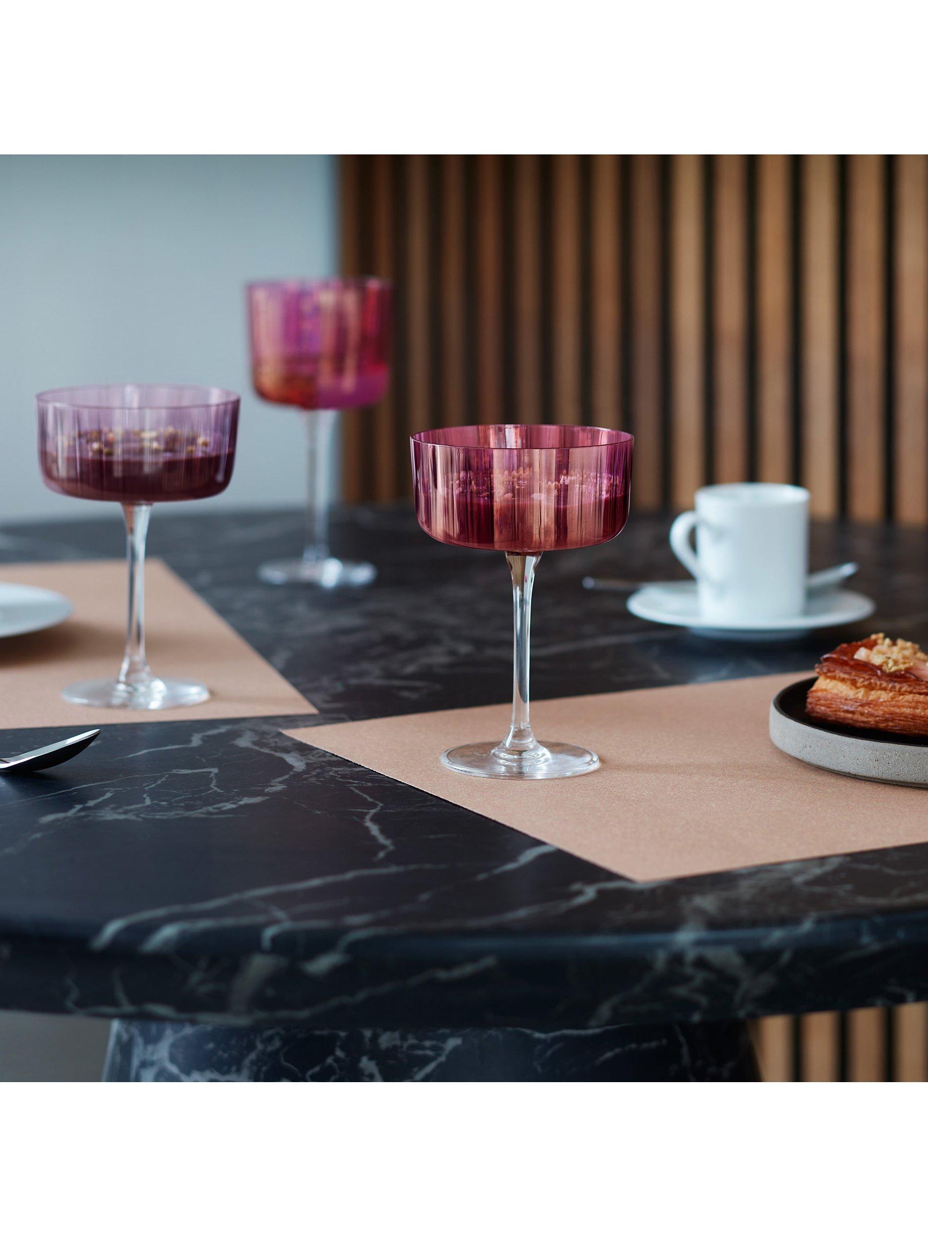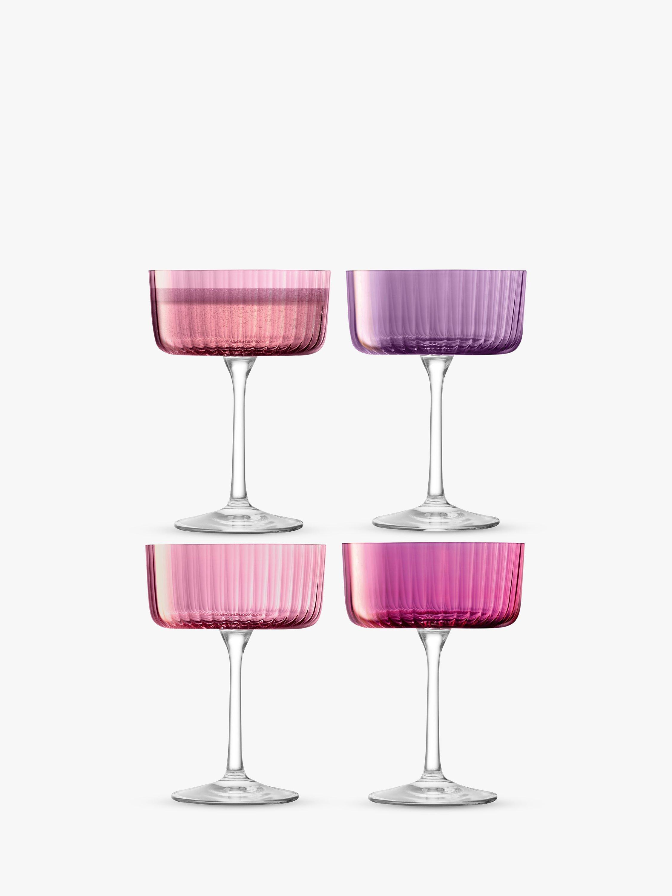 A set of four Gems champagne/cocktail saucers from LSA International with assorted hand-applied, jewel-coloured lustres inspired by semi-precious stones. The fine walls of each glass are fluted in texture like faceted gems that catch the light. Use for serving sweet champagnes and cocktails.