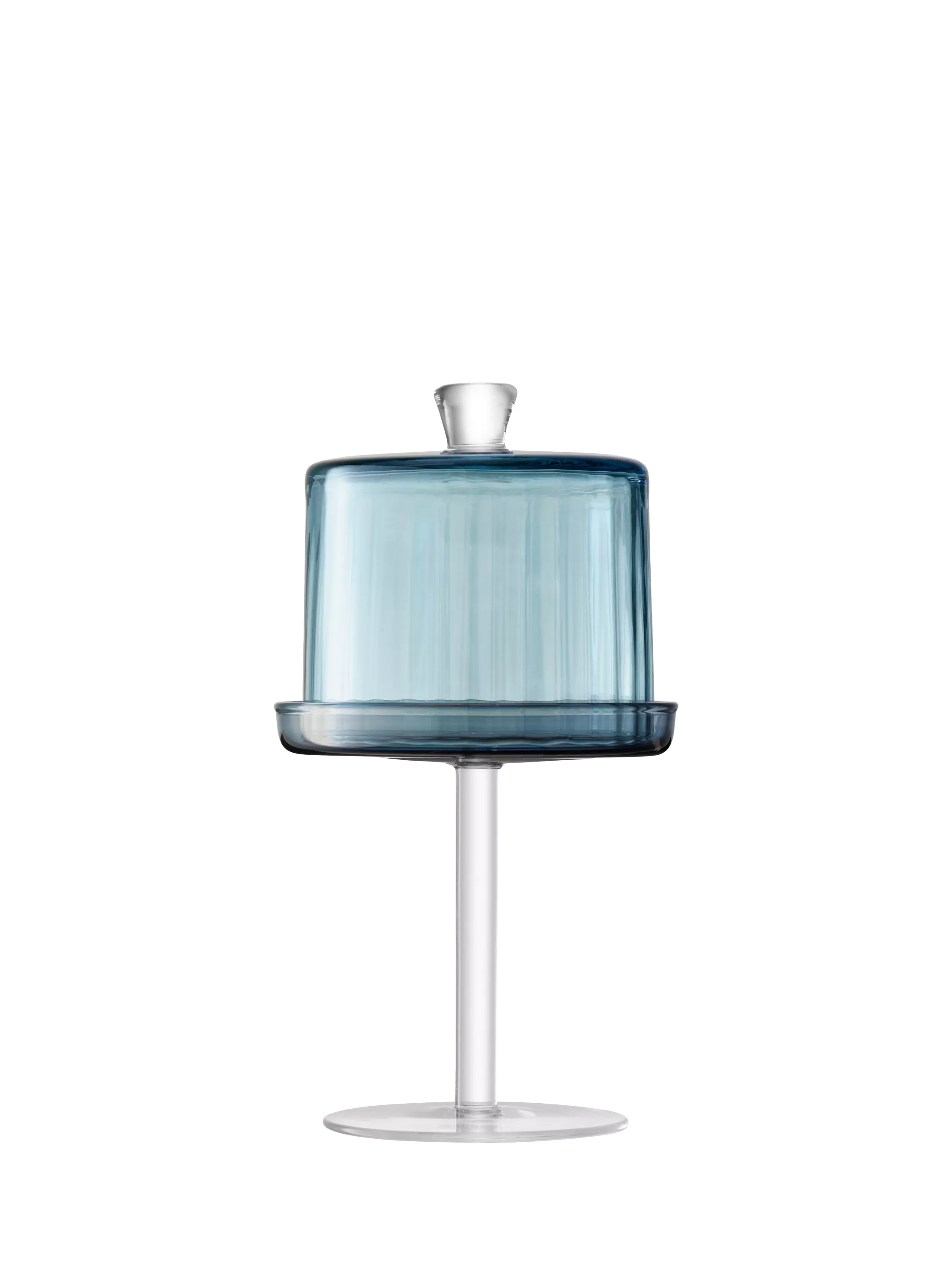 Mouthblown glass cake stand from LSA International with a hand-applied, jewel-coloured lustre inspired by semi-precious stones. The fine walls of the glass are fluted in texture like faceted gems that catch the light. Ideal for serving and covering a variety of chocolates, small cakes and cheeses.