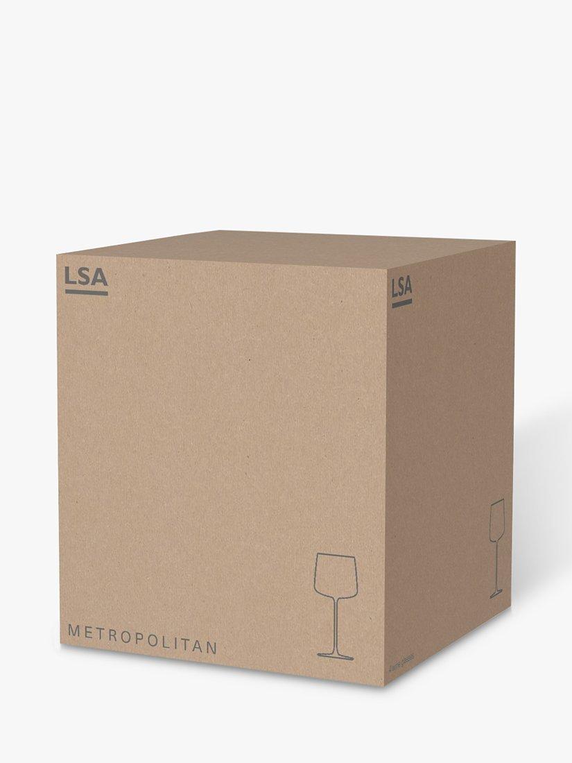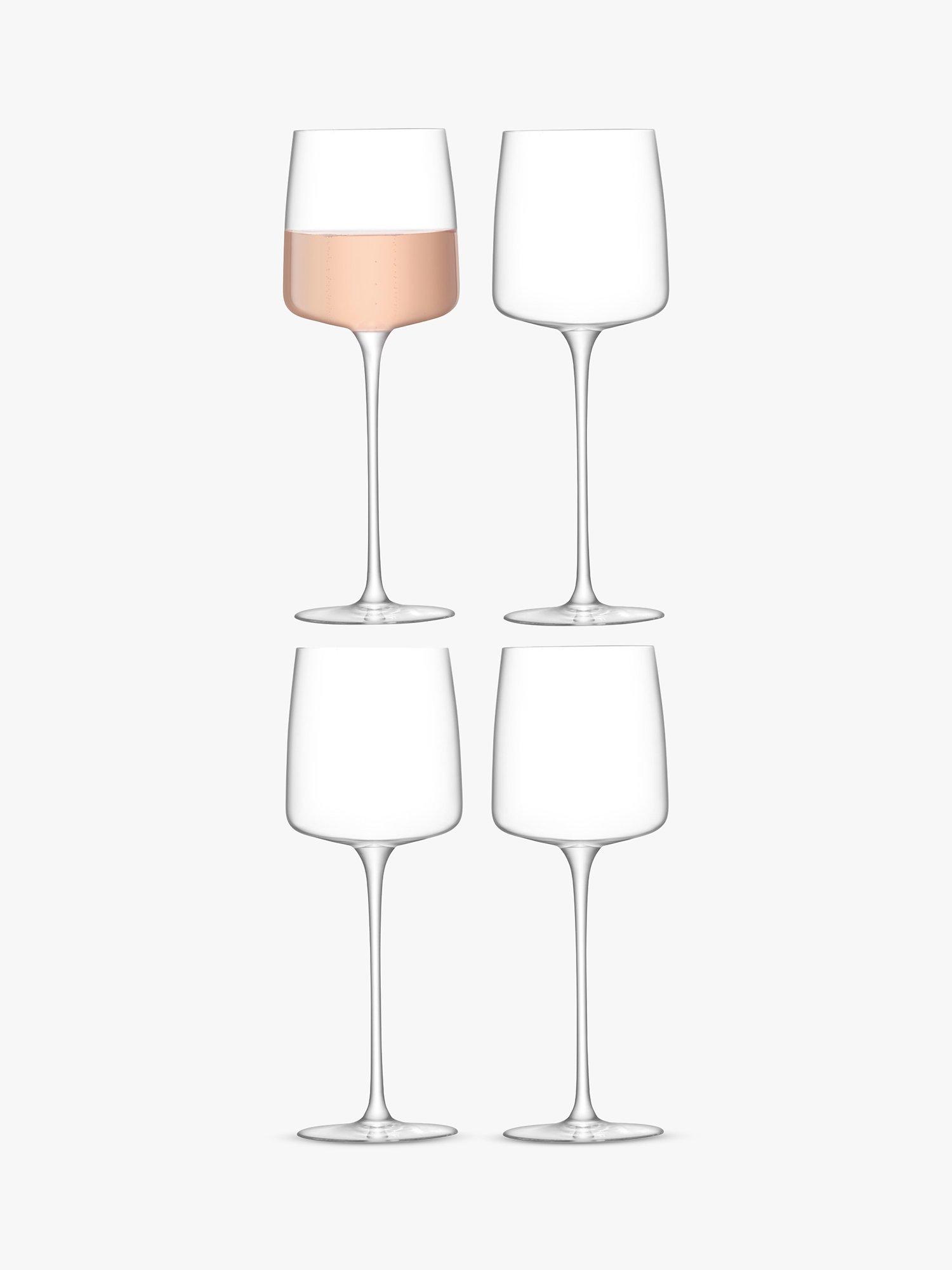Modern angular shapes define the Metropolitan glassware range from LSA International. This set of four wine glasses from the range are made in Poland by glassware experts. The tall elegant stems prevent wine from being warmed by the hand to keep your drink chilled for longer. The glassware is dishwasher safe.