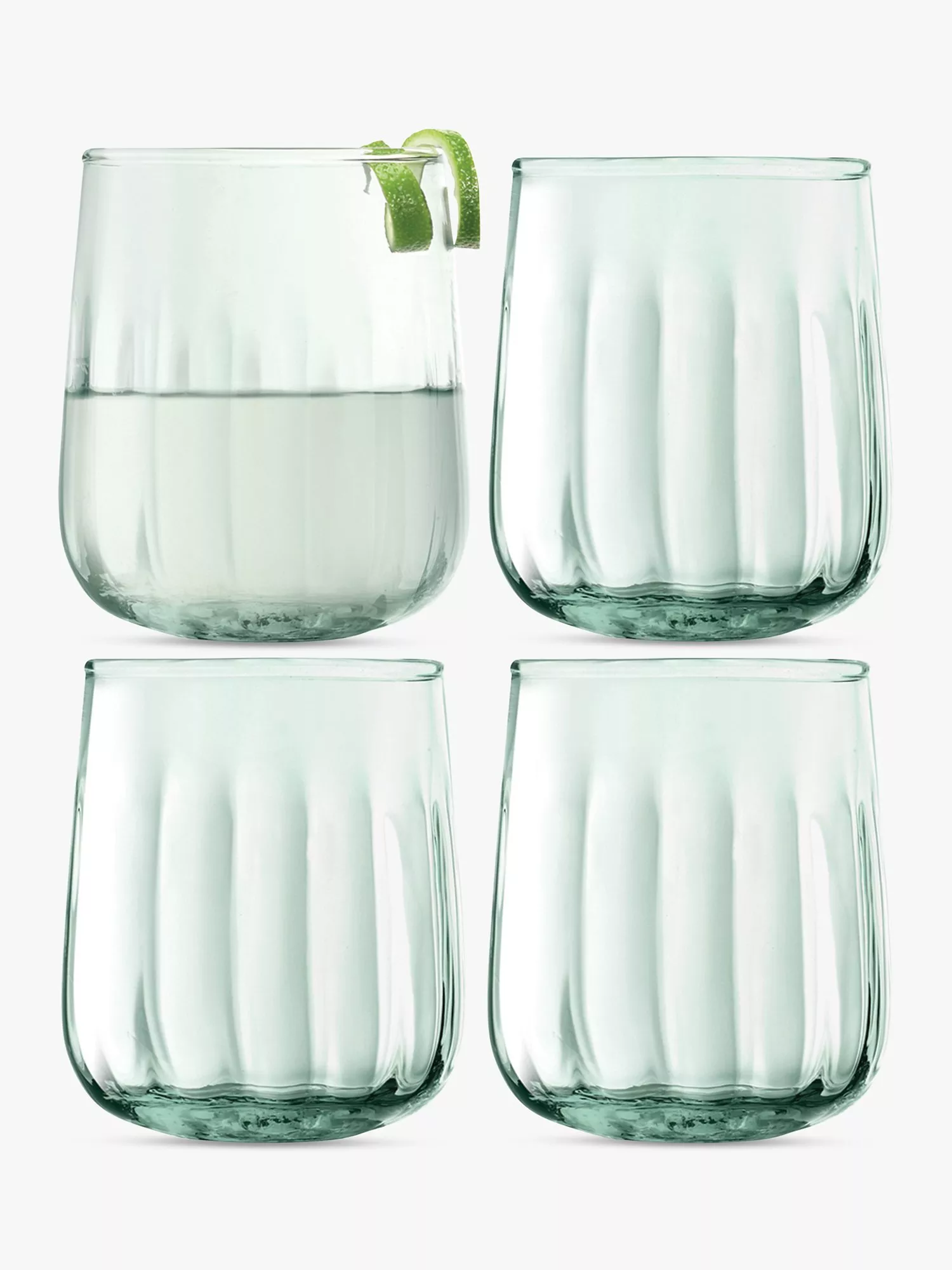 This set of four LSA International Mia tumblers have green credentials. Mouthblown from 100% recycled glass, entirely made up of disused bottles, they have a subtle fluted finish.