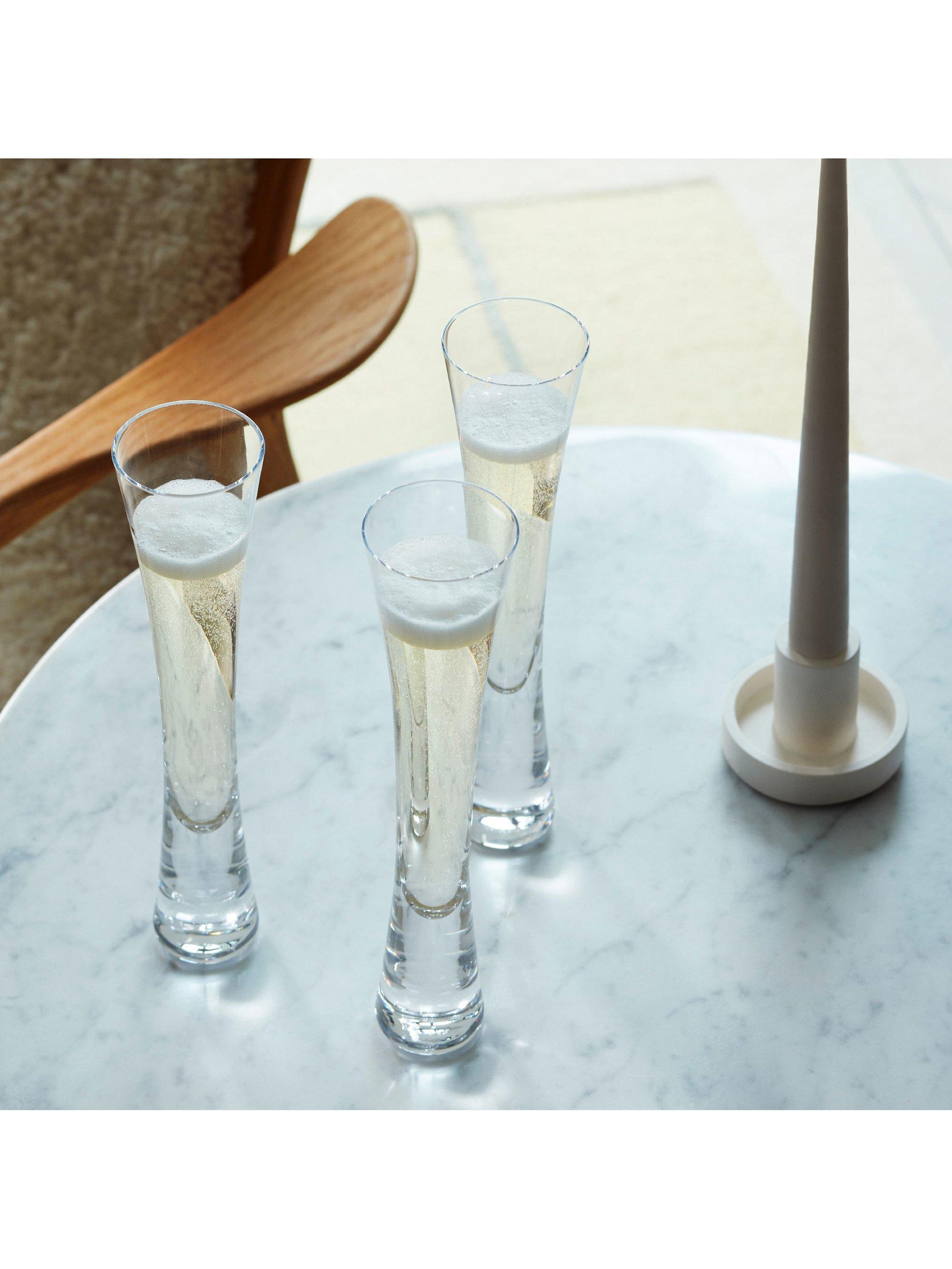 This champagne serving set for twelve is ideal for grand celebrations and special gift occasions. The handmade champagne flutes have Moya's characteristically weighty stem and thick base. The mouthblown champagne bucket completes the set.