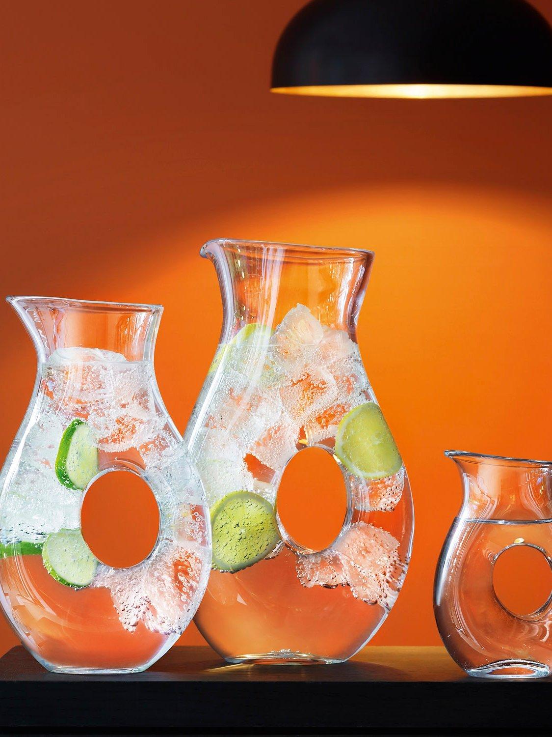Expertly handcrafted by LSA International, this elegant glass jug features a hole in the centre which can be used as a handle. With its intriguing decorative look and ergonomic design, it makes a practical and attractive addition to your glassware and dining table.